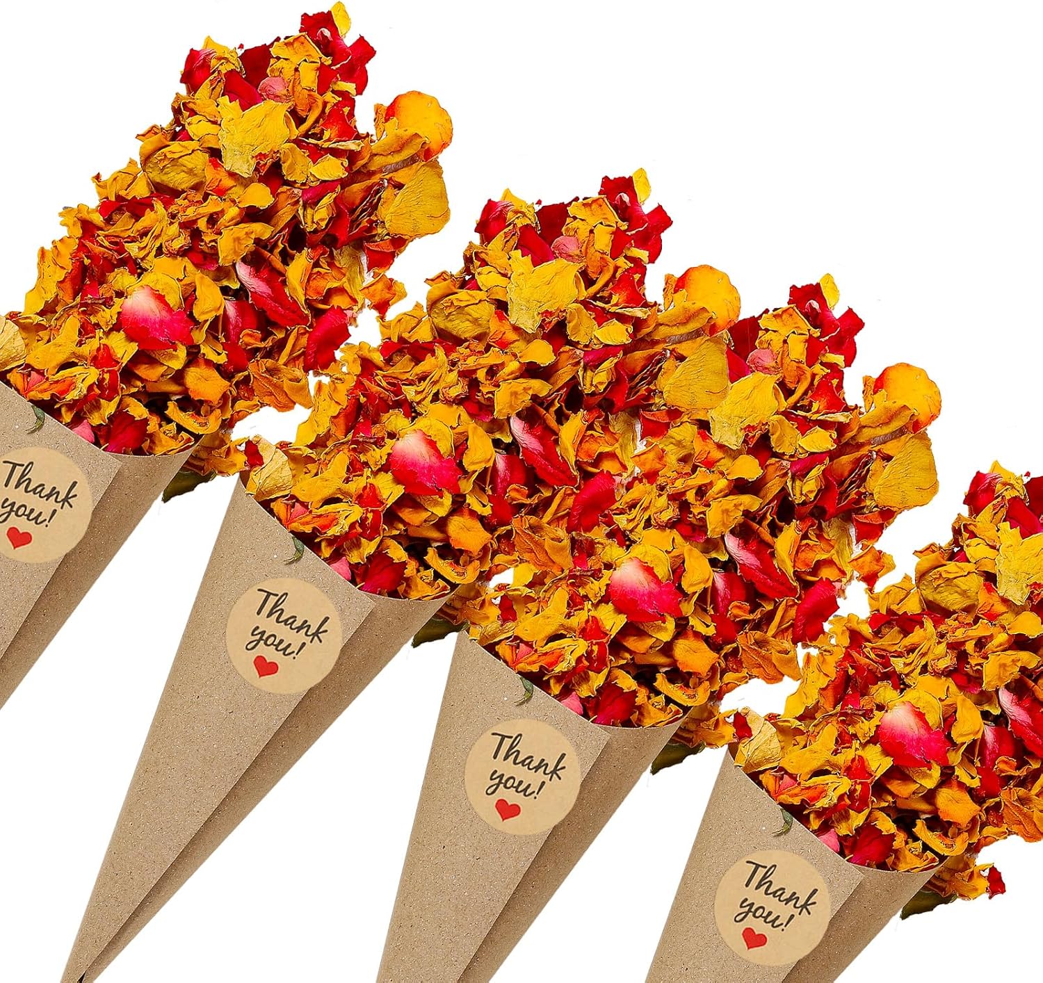 - Durable Material - The confetti cones and paper cone boxes are made of paper material, have no odor, are comfortable to touch, light quality, and do not take up extra space. The dried petals are made of natural rose mix, you can smell the fragrance of different natural rose mixes, giving you a romantic experience.