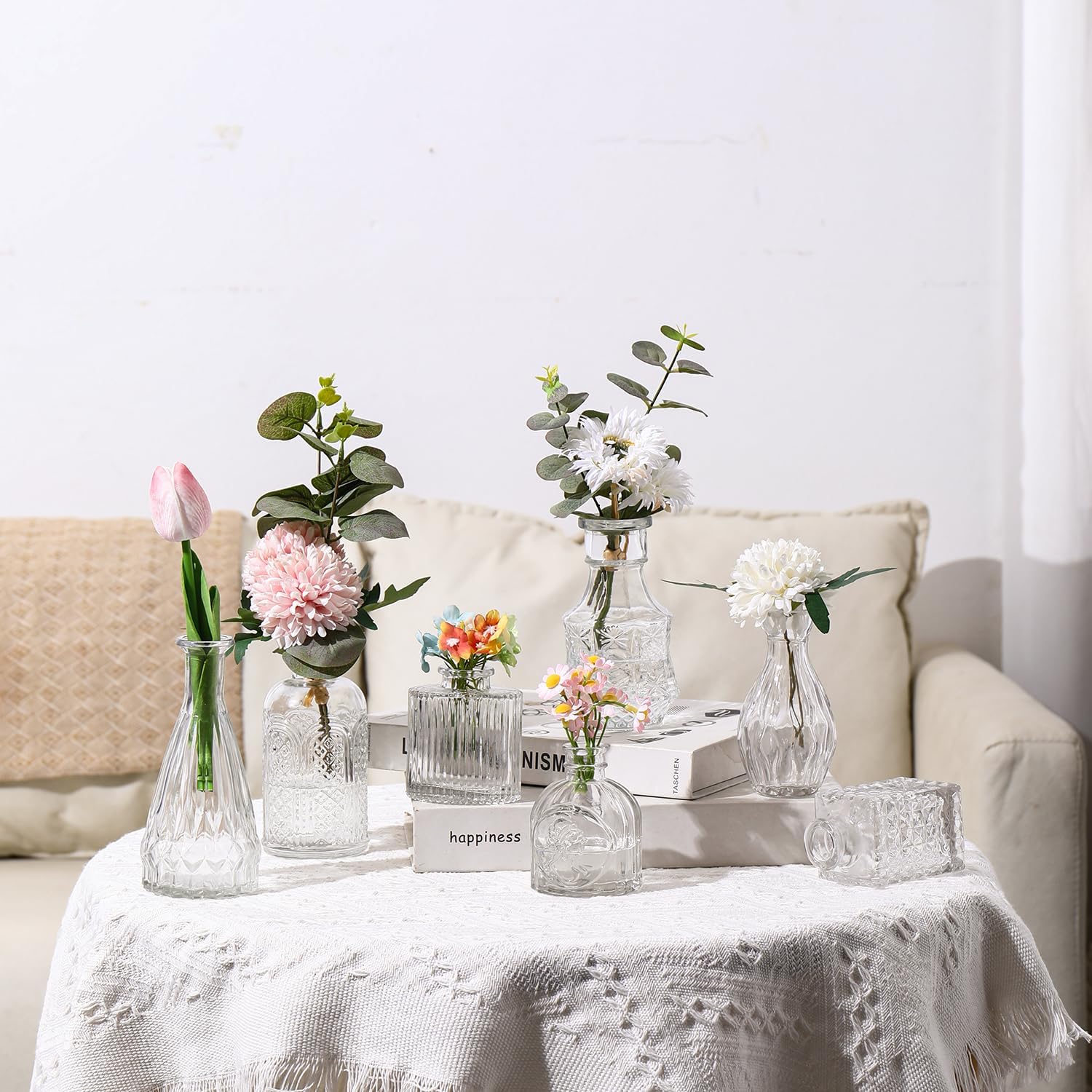 - Premium Quality: These glass flower vases are made of 100% premium Soda Lime glass, which is sturdy, leak-proof, easy to clean, and not easily broken. These vase sets have been drop-tested and are more sturdy than other glass vases. The handmade embossed pattern makes these vintage bud vases delicate and vivid