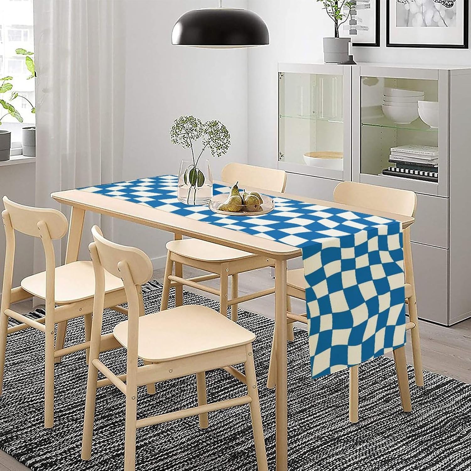 Table Flag Retro Plaid 60s70s Blue Plaid Table Flag Kitchen Restaurant Decoration Suitable for Indoor and Outdoor Festival Home Wedding Party Table Flag 13x60