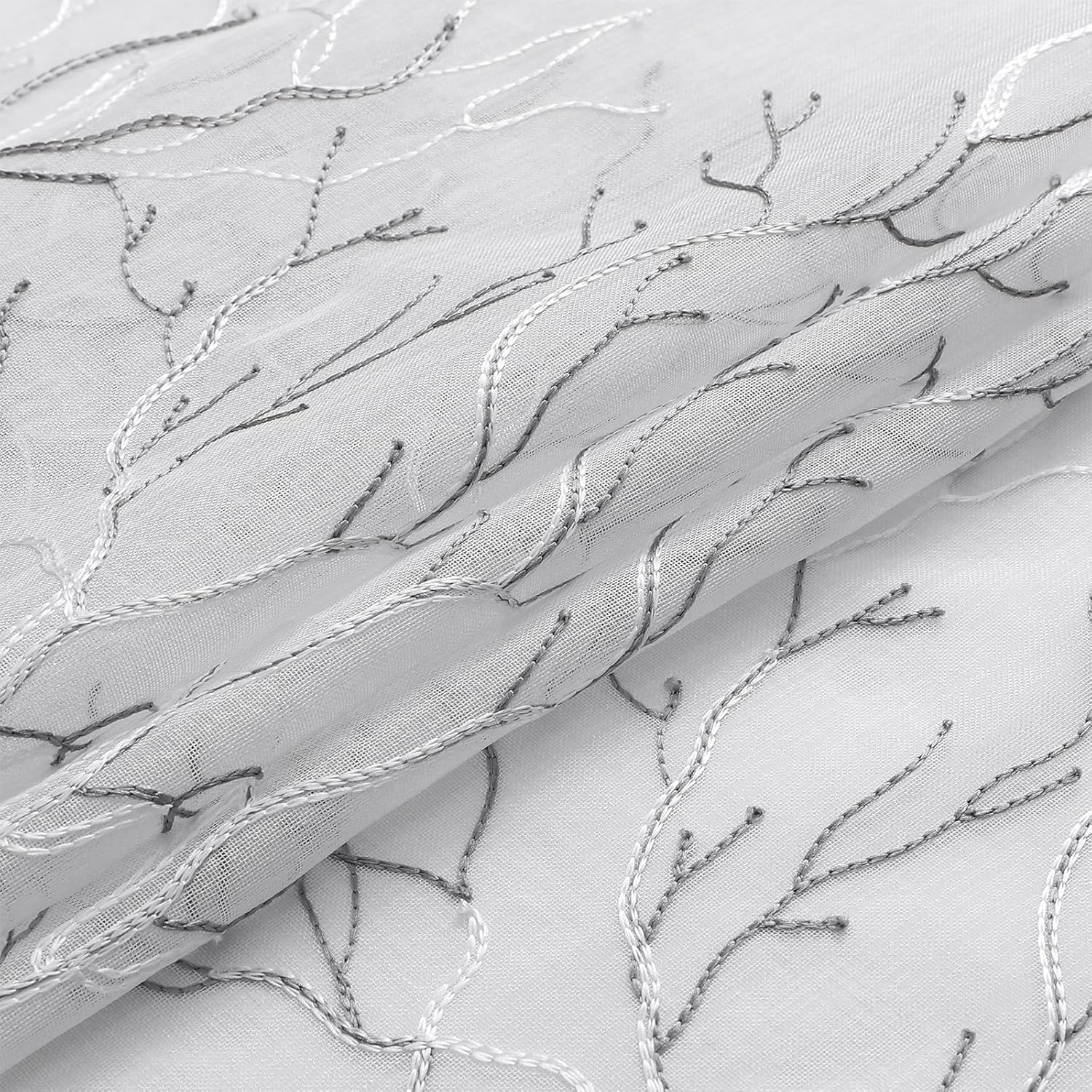VISIONTEX Sheer Curtains 72 inch Length 2 Panels Set, Decorative Grey Coral Embroidery, Rod Pocket Embroidered Window Drapes for Living Room and Bedroom, 54" x 72"