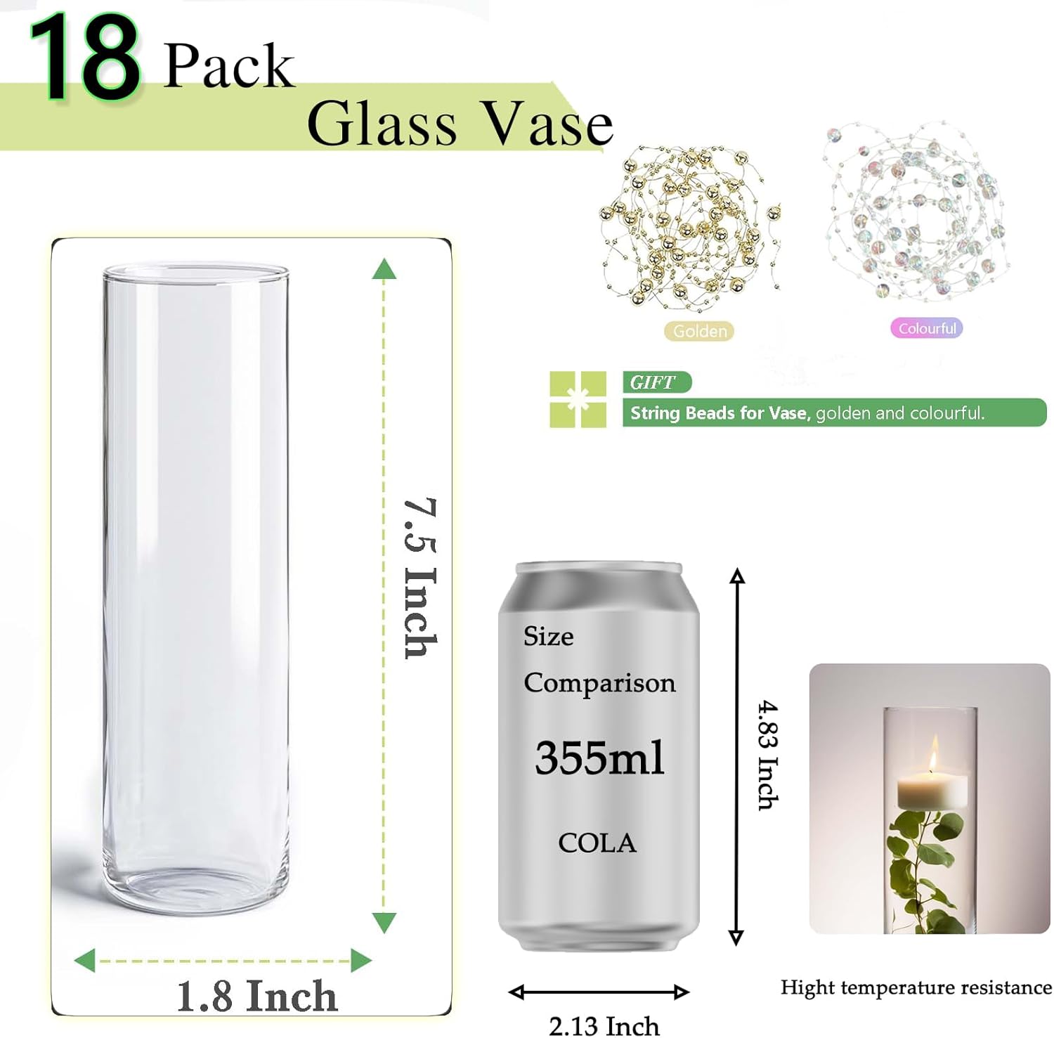 Glass Vase 18pcs Glass Cylinder Vases for Centerpieces Small Flower Clear Vases Home Decor Centerpiece Table Flower Vase Decorations for Office Beautification&Holiday 7.5 Inch Tall