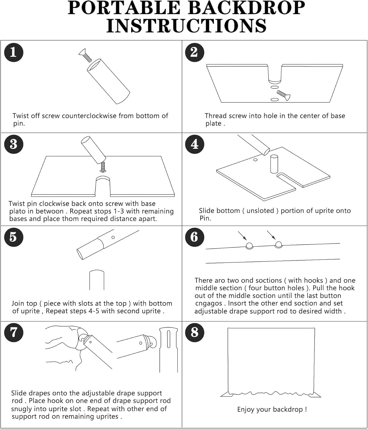 Portable Pipe and Drape Heavy Duty Backdrop Stand, ADJ Metal Frame and Heavy Metal Base for Wedding, Birthday Party, Photography Backdrop (1*ADJ UprightPole 4-7FT)