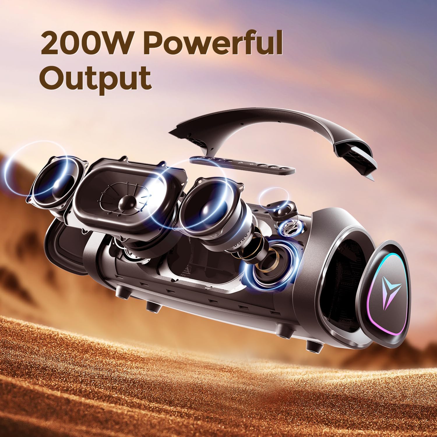 - 300W Peak 200W RMS Deepest Dynamic Bass: The massive 300W peak allows Sonic boom max bluetooth speaker loud to deliver extreme dynamic and powerful bass and treble, providing an immersive listening experience. A robust 200W RMS ensuring high-quality massive sound reproduction over extended periods without distortion. The Sonic boom max loud bluetooth speaker performance remains strong regardless whether it's in battery mode or plugged in. Sonic boom max bluetooth speaker loud is desirable for professional music studio, large party, gathering, movies or games
