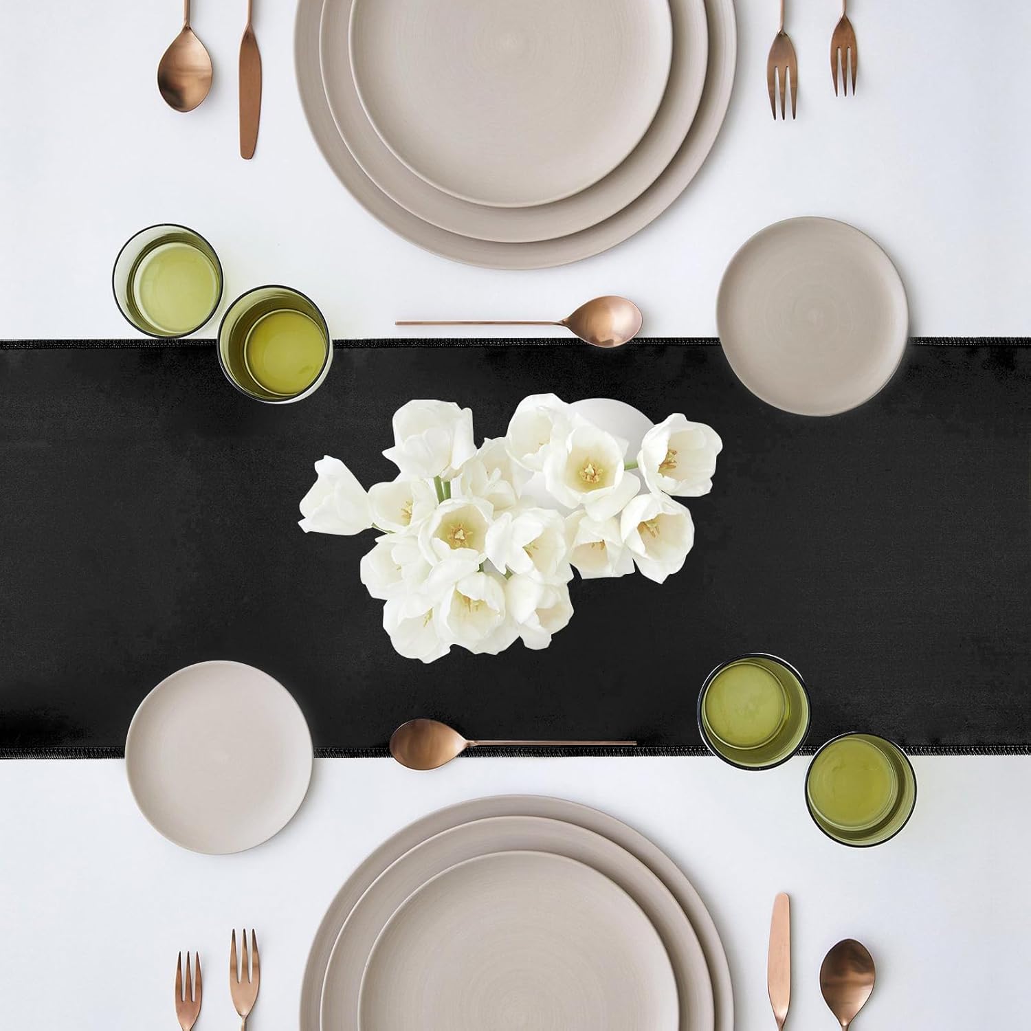 10 Pack Satin Table Runner 12 x 108 Inch Long Black Silk Table Runner for Wedding Party Banquet Birthday Decoration