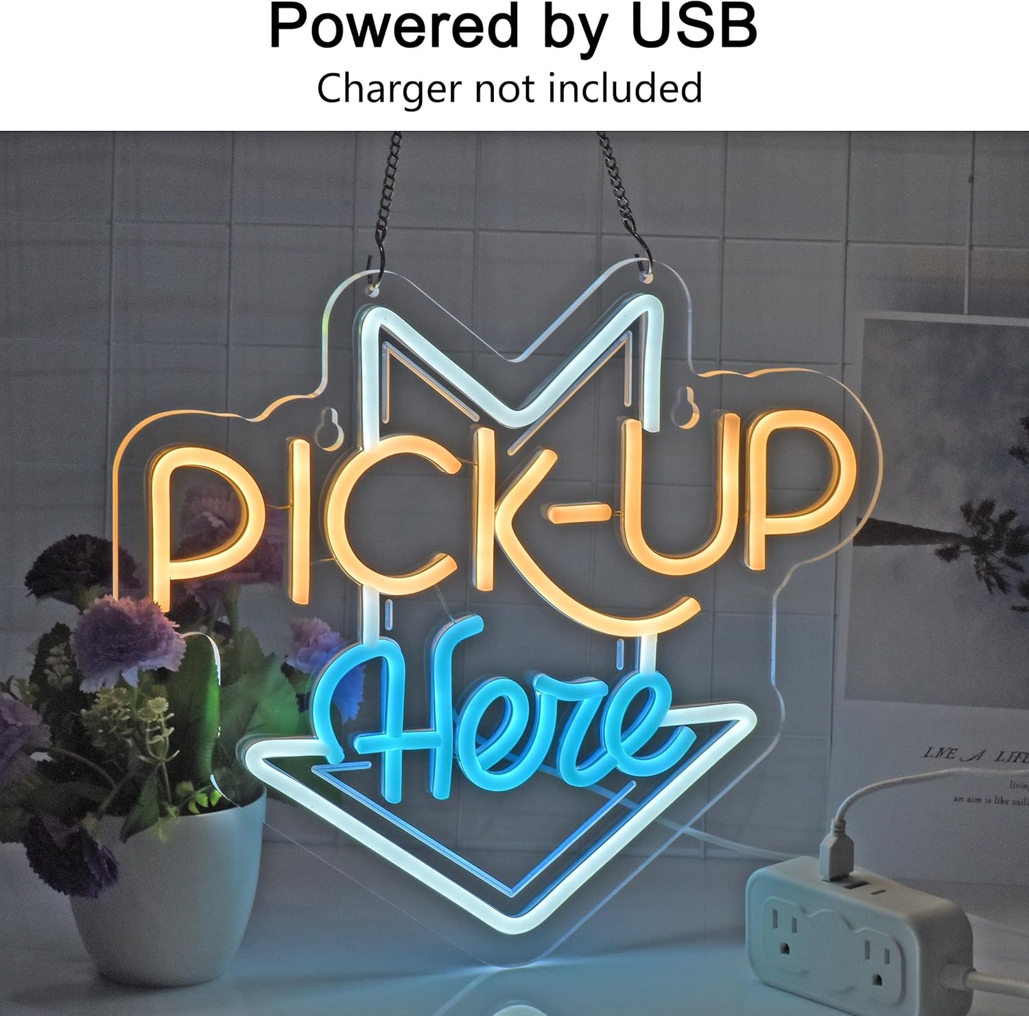 PICK-UP Here Neon Sign, Neon Lights Hanging Wall Art Decoration for Restaturant Shop Bar Market Bakeries Café Celebration Home Decor, USB Powered Ultra Bright Dimmable,14.57×12.6inches