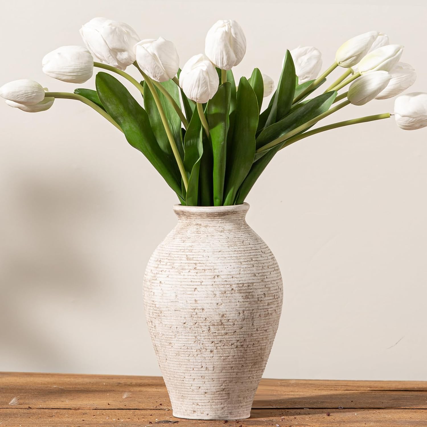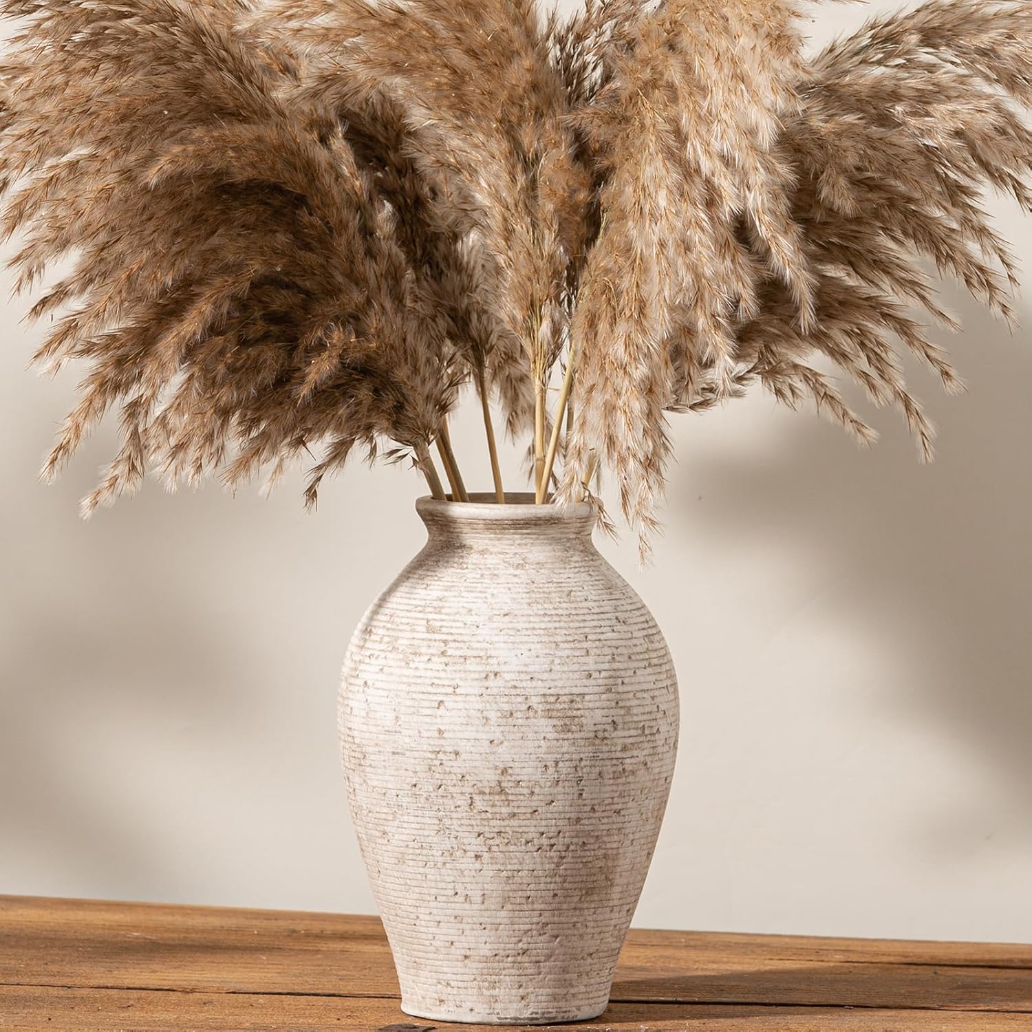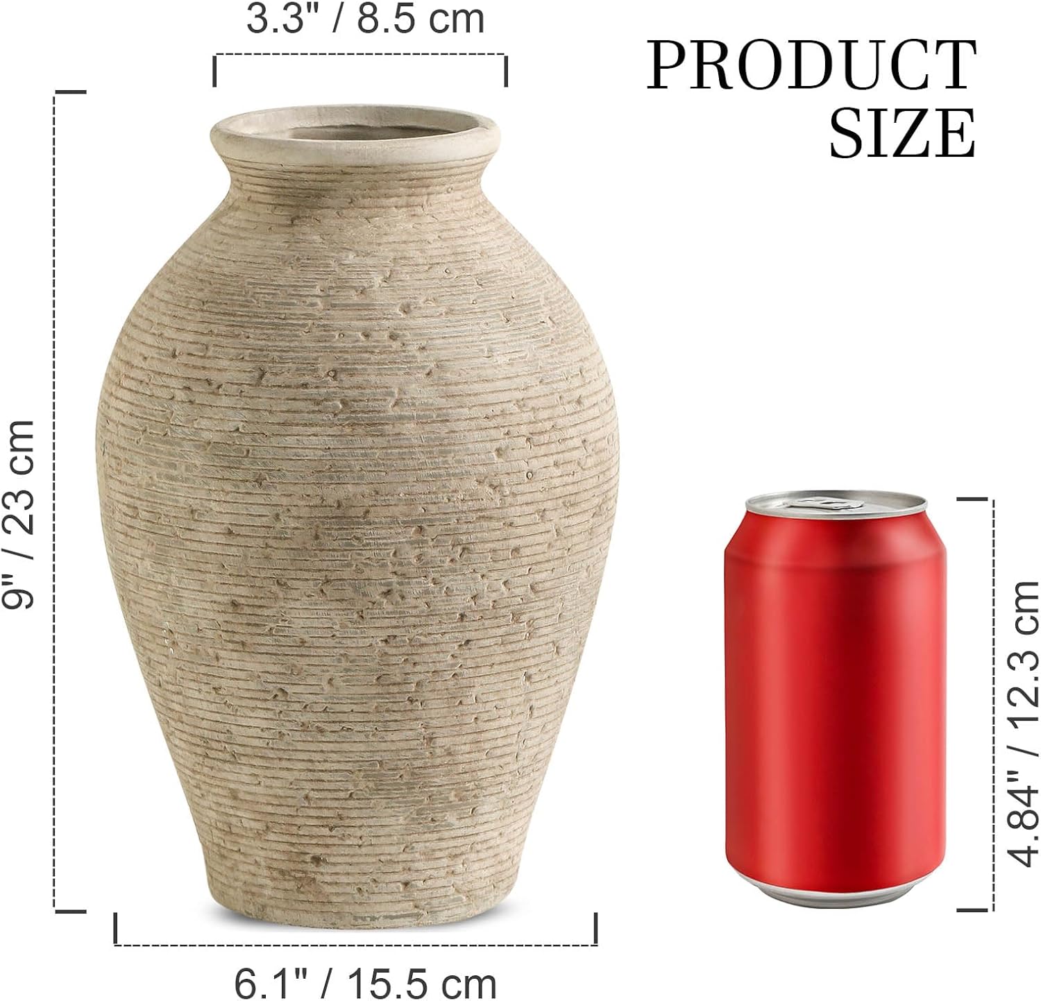 - 【Handcrafted & Rich in Texture】Featuring intricate detailing and a rich texture, this vase complements a variety of home styles—farmhouse, rustic, country, even modern. It effortlessly blends in with existing furniture and accessories, adding a timeless charm and harmonious look to your space. (Note: Each piece is hand-finished, so slight variations in texture make every vase unique.)