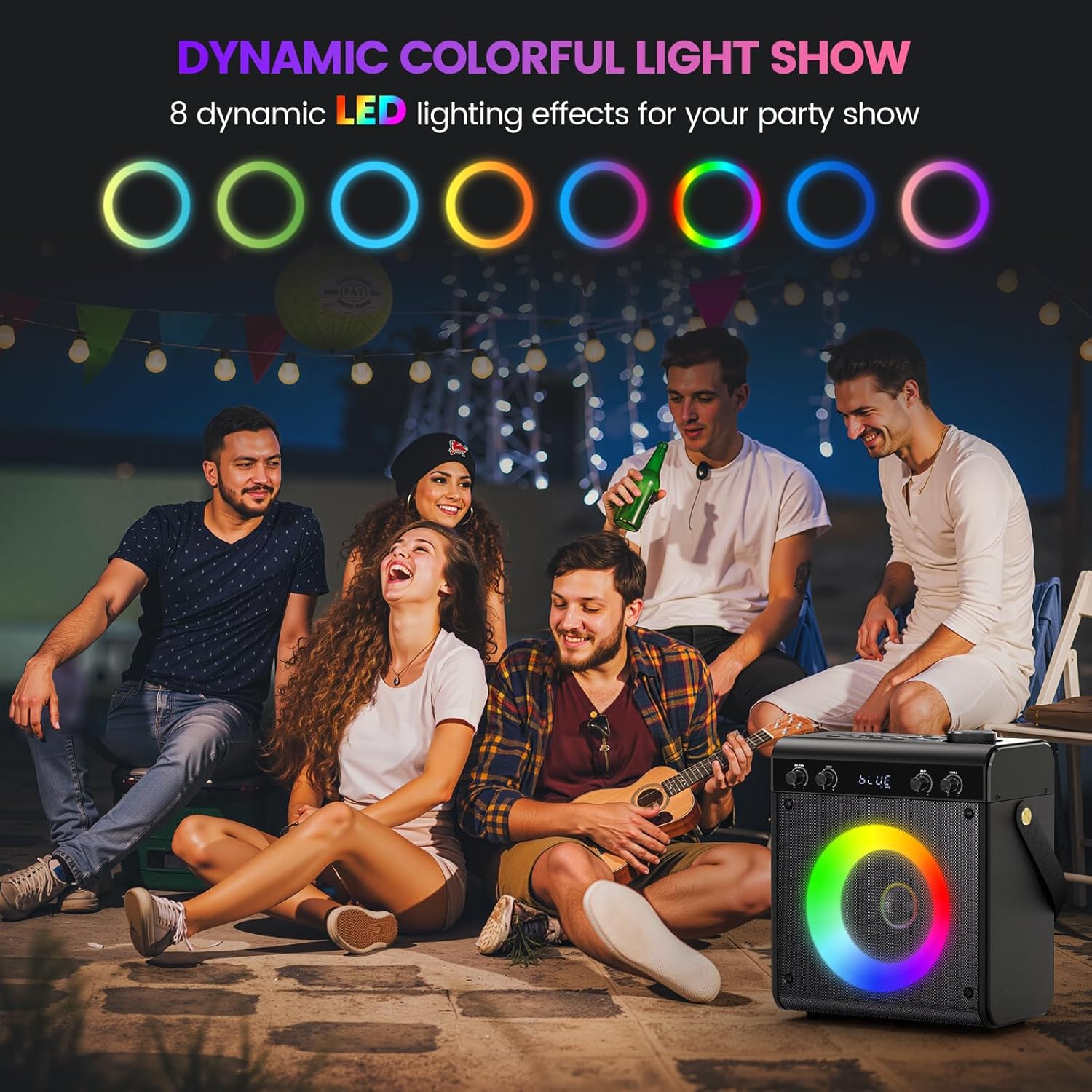 - LED Light Show & TWS Mode Pairing: Transform any space into a vibrant concert hall with the built-in LED light show! The dynamic lights pulse and dance to the music, creating an immersive and unforgettable karaoke experience. Pair 2 speakers via TWS for 360° stereo immersion