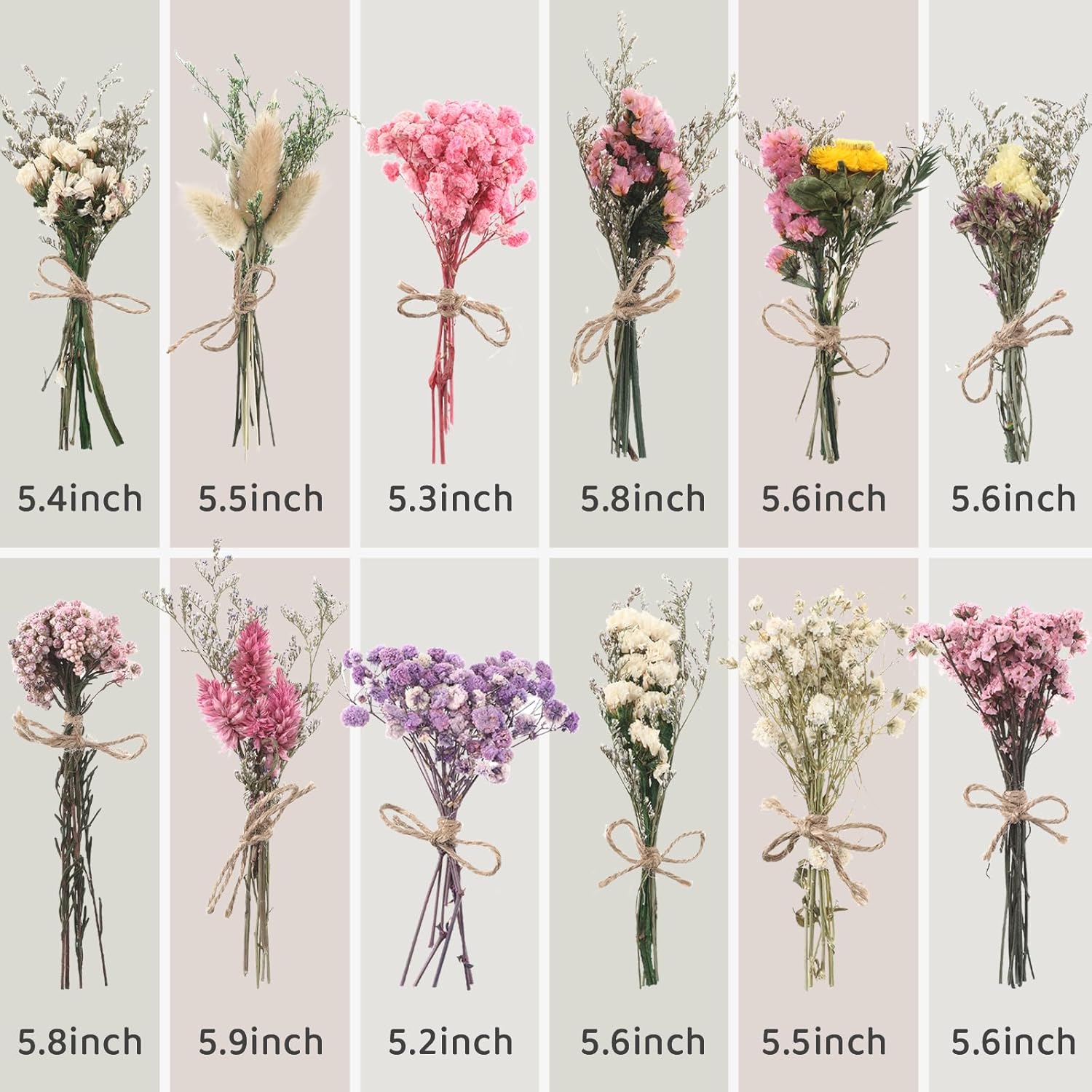 - Small and delicate: The bouquet is 5.3-5.9 inches (13-15 cm) long and delicate and lovely. The stems are firm and fit easily into vases. Compared with fresh flowers, dried flowers have a longer shelf life and are not easily wilted. Whether it is used for DIY handicrafts or packaged into mini bouquets, it can bring a lasting natural atmosphere to weddings, homes and other Spaces