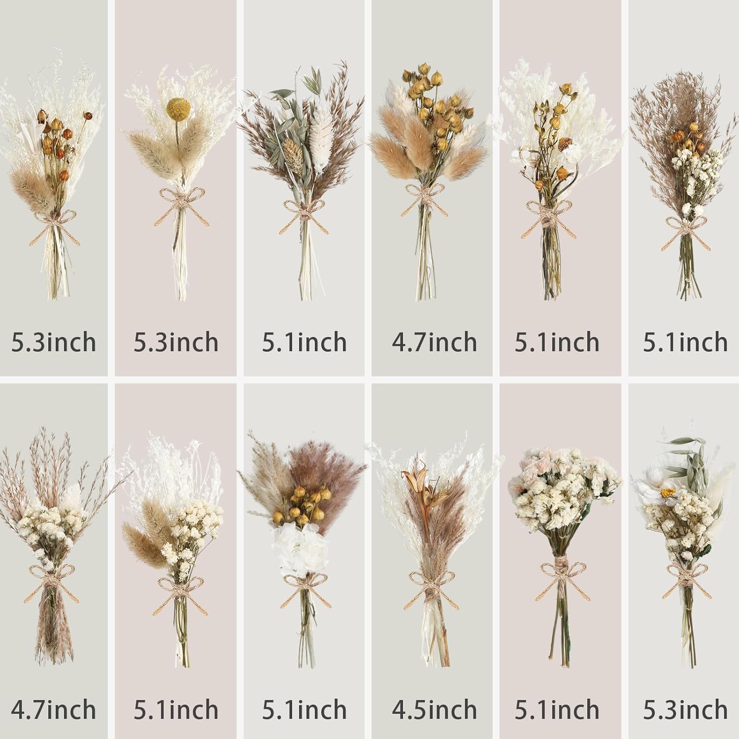12/24 Pack Dried Flowers for Vase Various Mini Bouquet Dried Small Wildflowers Natural Real Flowers Bulk for Crafts DIY Wedding Decor (24, Plain Colour)