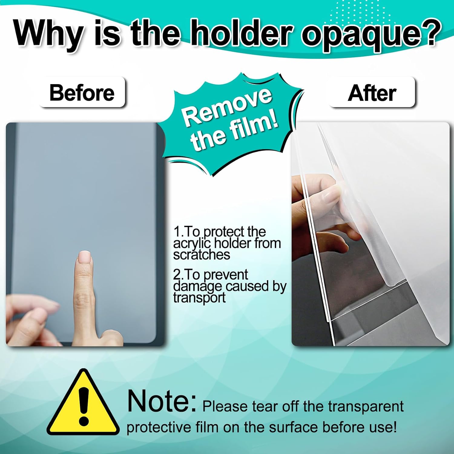 • Tips:As we cover the surface of the plastic paper holder with a protective film, the surface of the wall sign holder you receive does not look transparent, you need to manually peel off the surface of the clear protective film before use. If there is any damage, please feel free to contact me, I will provide you a satisfactory solution within 24 hours