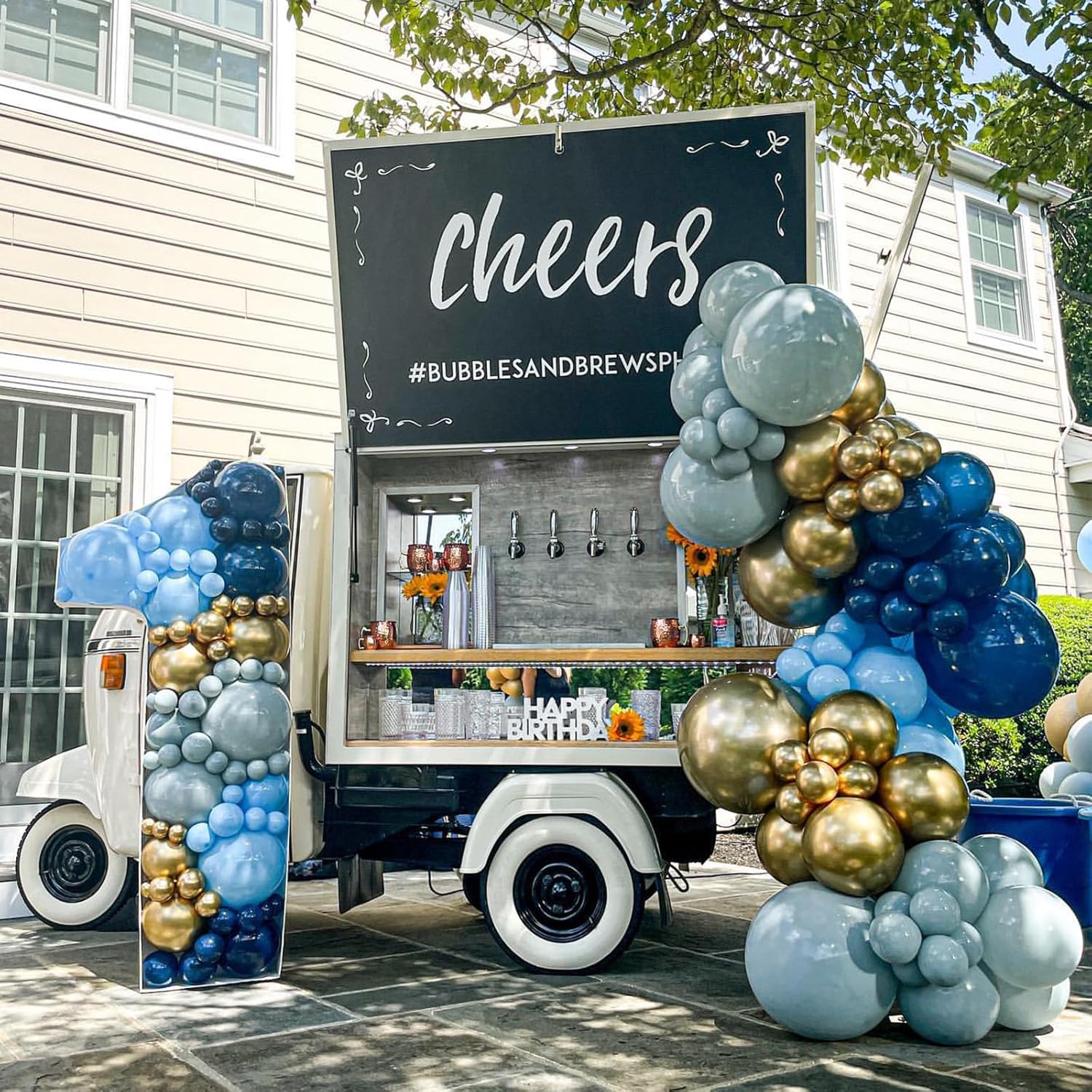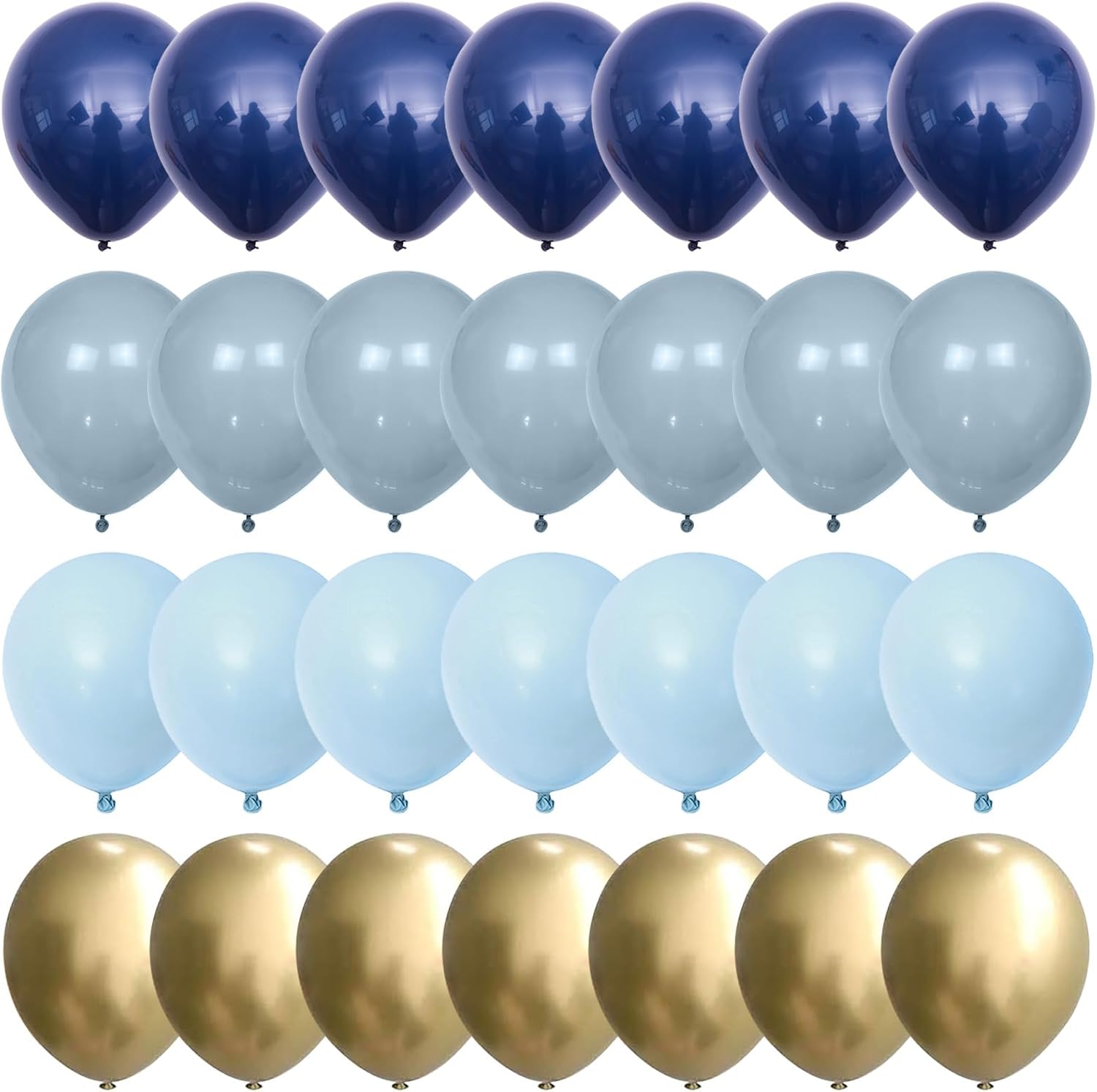 • Blue Gold Balloon Set: 35 pcs 12 in retro blue theme balloons, including 10 pcs retro navy blue balloon, 10 pcs muted dusty blue balloons, 10 pcs pastel blue balloons, 5 pcs metallic gold helium balloon, and 1 pc balloon ribbon