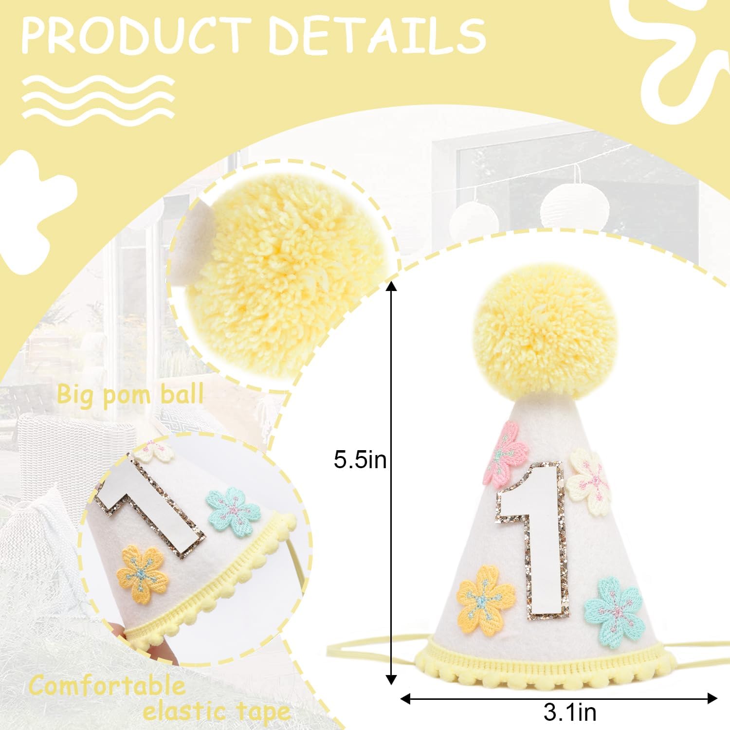 WAUAO Colorful Flower 1st Birthday Cone Hat for Girls - Cute & Adorable Floral Crown, First Birthday Decorations