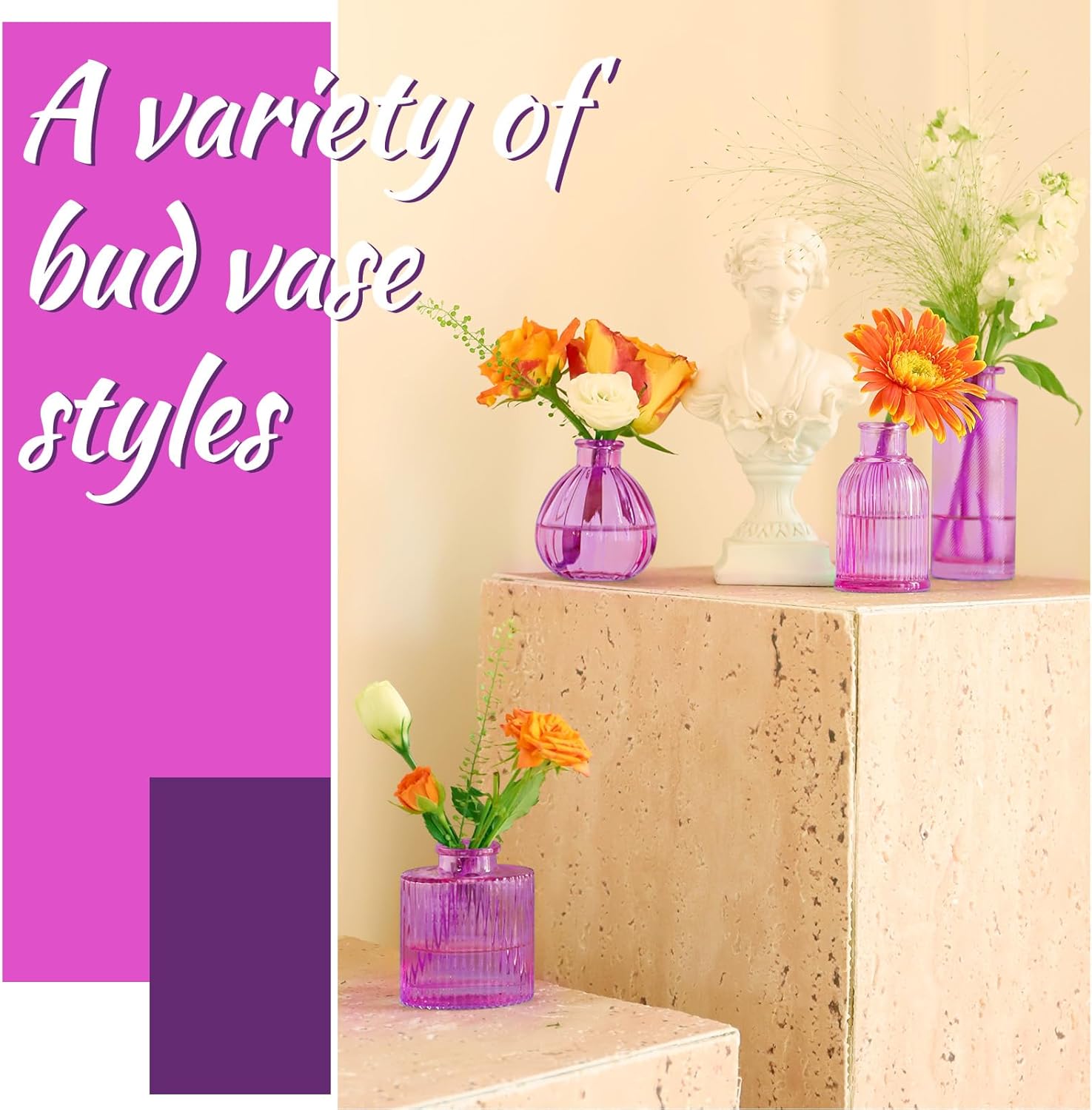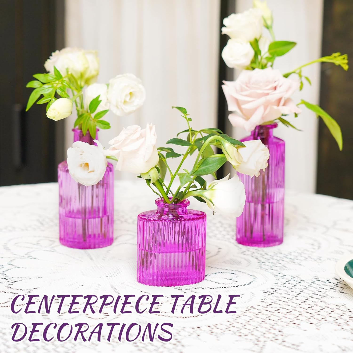 12PCS Hot Pink Vase for Flowers, Small Glass Bud Vases for Centerpieces Purple Flower Vase in Bulk for Home Office Decor