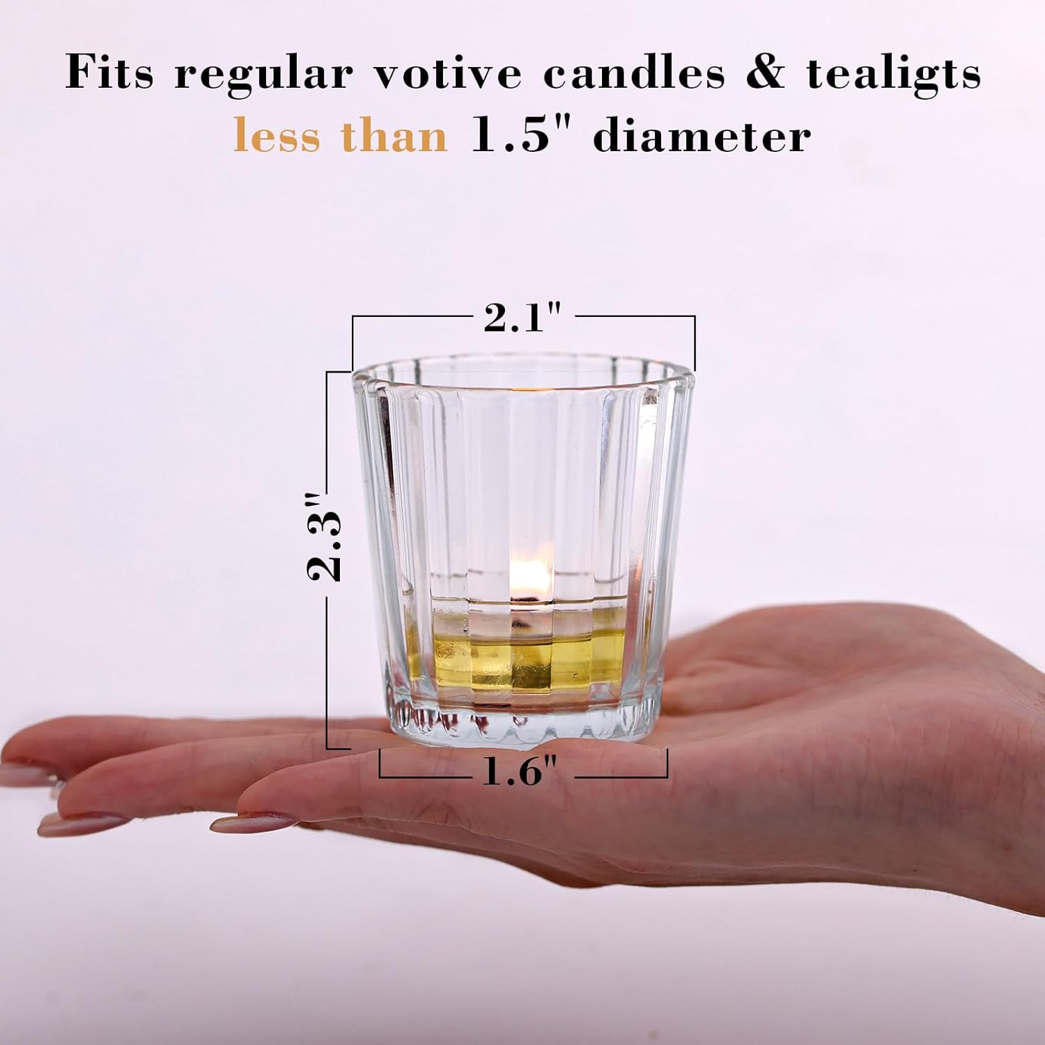 - About Size: Our ribbed candle holder is relatively exquisite and small as a whole. Its height is 2.36 inches, and the bottom diameter and top diameter of the bottom are 1.73 and 2.2 inches. Perfect for most of the votive candles, tealight candles and flamless candles.