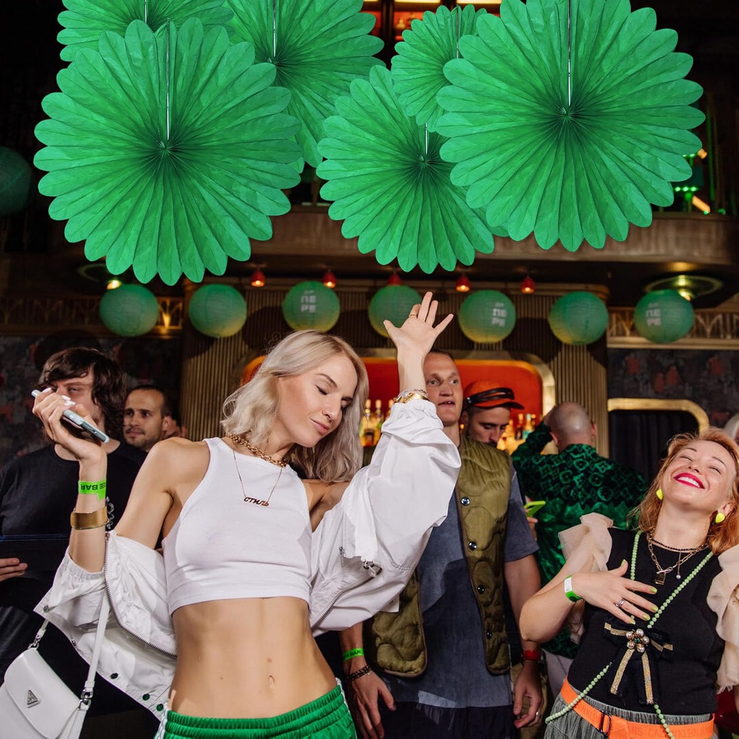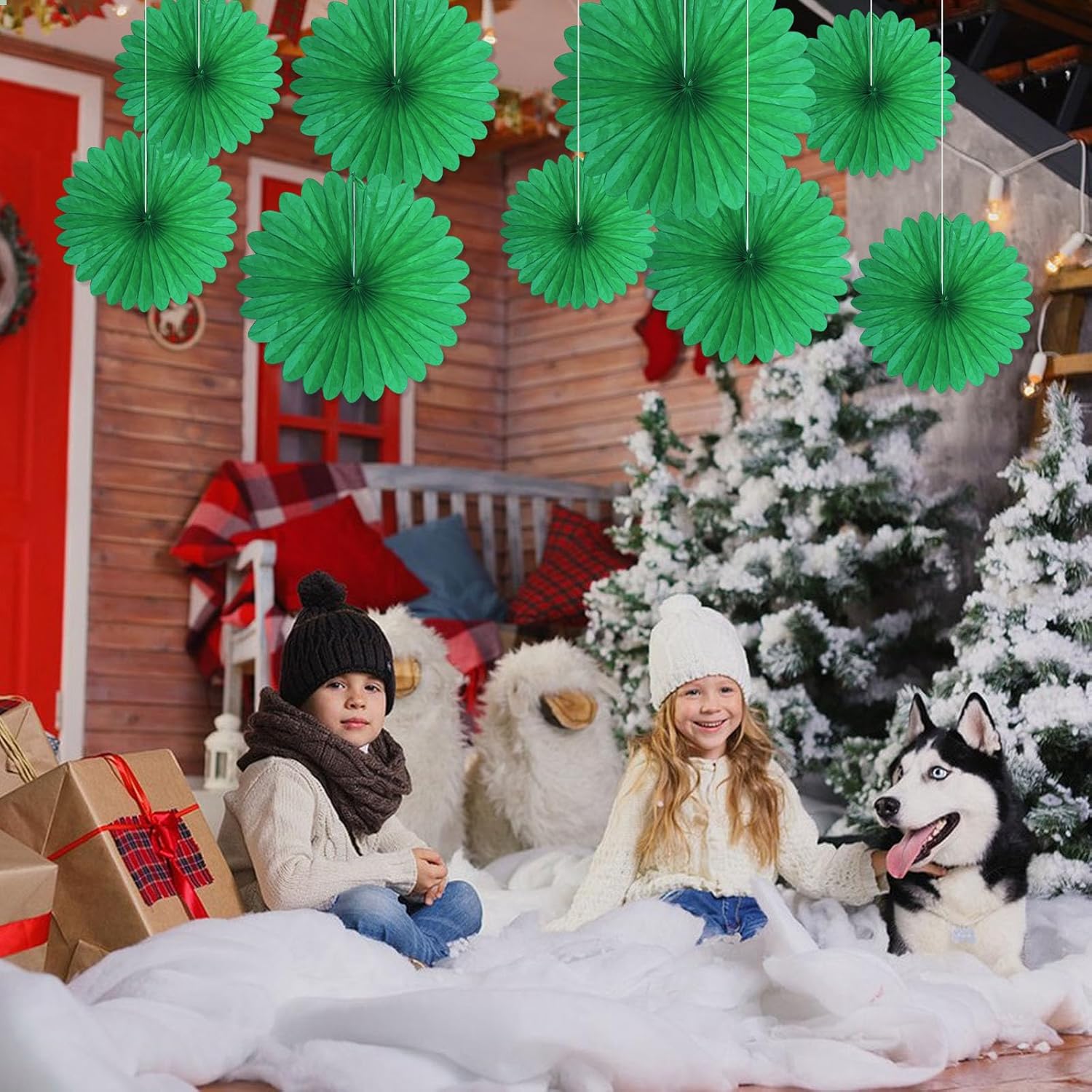 20 Pcs Green Hanging Paper Fan, Round Paper Fans Decorations Set for Weddings, Birthdays, Engagement, Bridal Shower, Baby Shower Event, Graduation, Party Supplies Decor