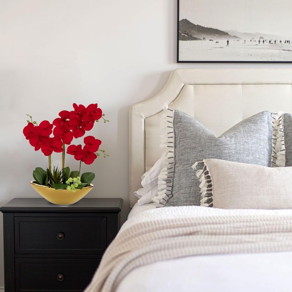 - Lifelike Red Orchid Blooms: The artificial red orchids feature meticulously crafted petals made from high - quality silk. Each petal boasts a vivid red hue and a soft, real - touch texture that closely mimics the appearance and feel of natural orchid flowers. The detailed veining and delicate shape of the petals enhance the realism.
