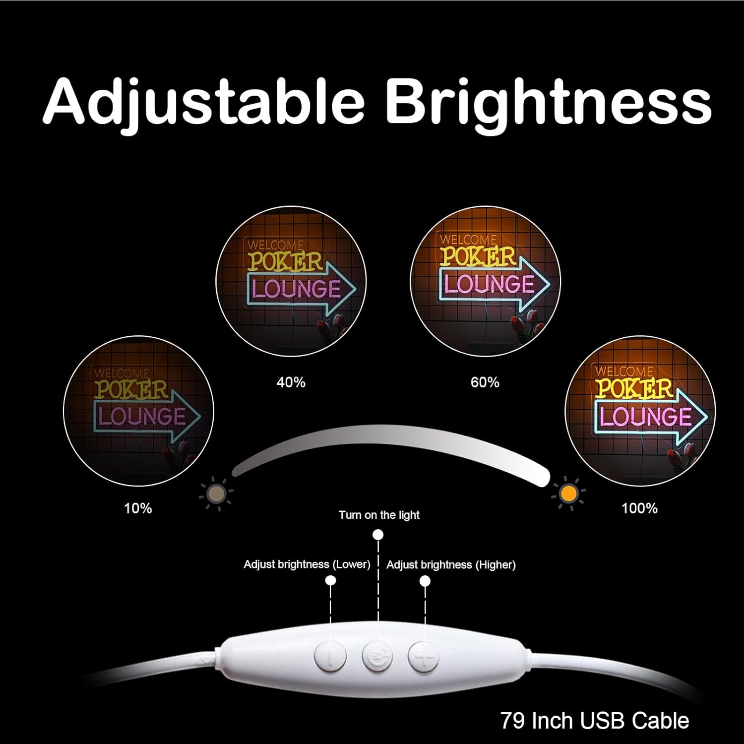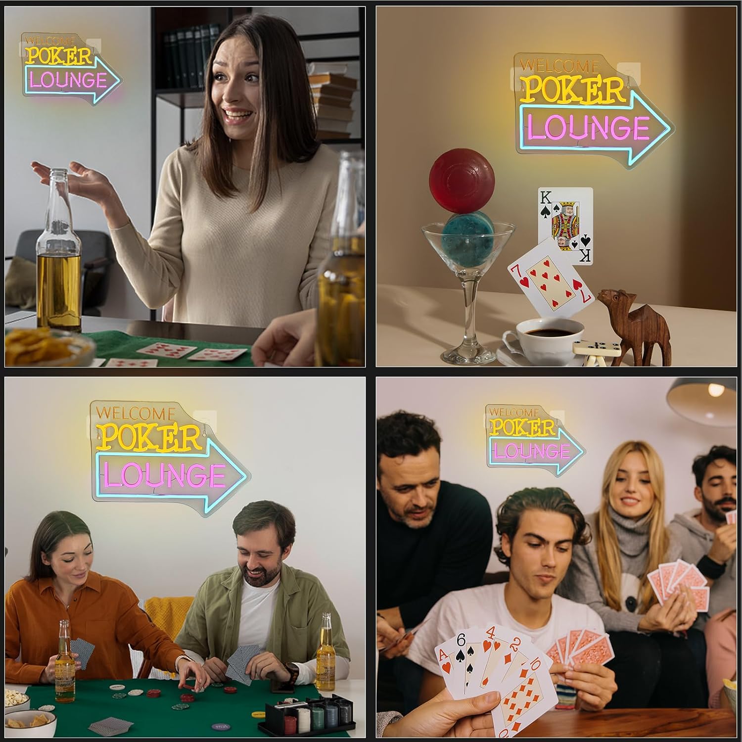 - Welcome Poker Lounge neon sign: measures 15.3 x 11 inches with high transparency acrylic sheets and LED lights to create a more suitable environment and atmosphere for the poker lounge