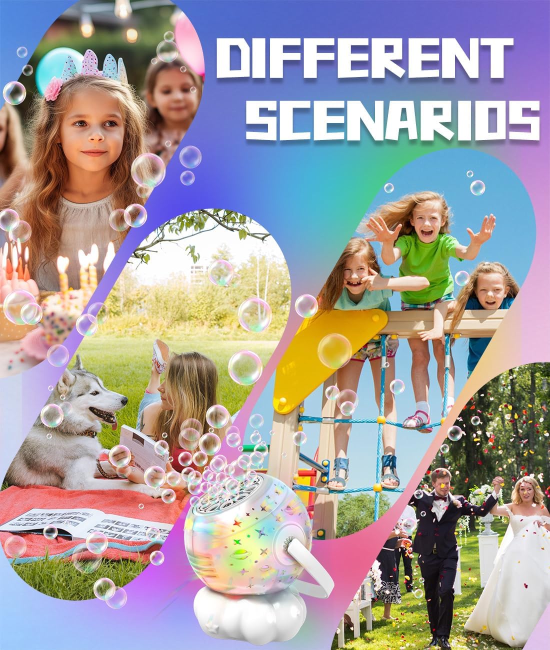 - Magical Starry Light Show: Multicolor LEDs project starry patterns through precision-cut holes, creating a dreamy bubble atmosphere. Watch kids’ eyes light up as they chase glowing bubbles and explore imaginative space-themed play