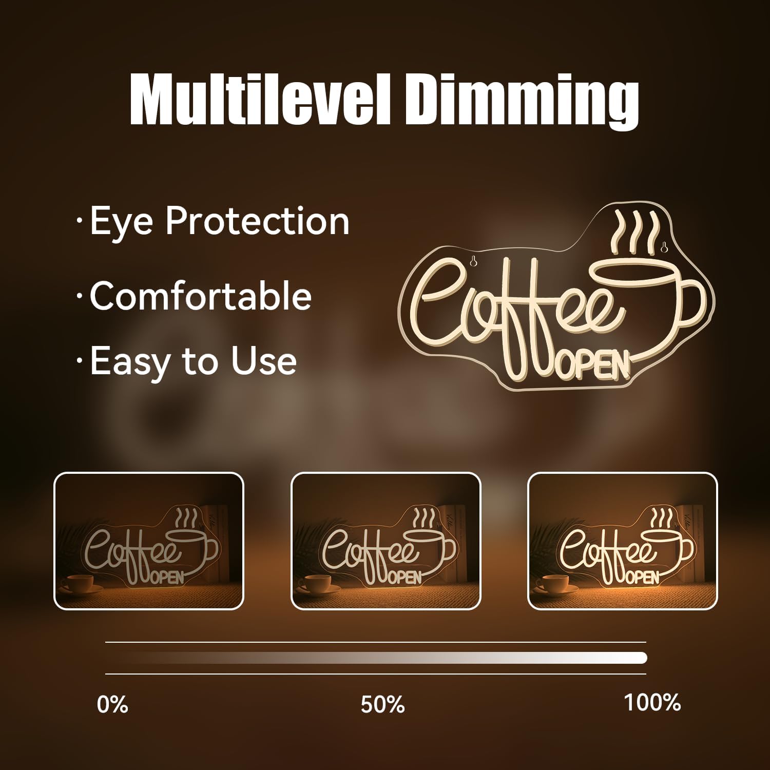 - Eye-catching sign:This Coffee Open neon sign is a unique storefront decoration sign. It is composed of flexible LED light strips and transparent high-definition acrylic backplane. It has excellent long-term effects and high-brightness light effects, which will definitely catch the attention of pedestrians. Suitable for your coffee bar cafe business restaurant club party man cave wall decor