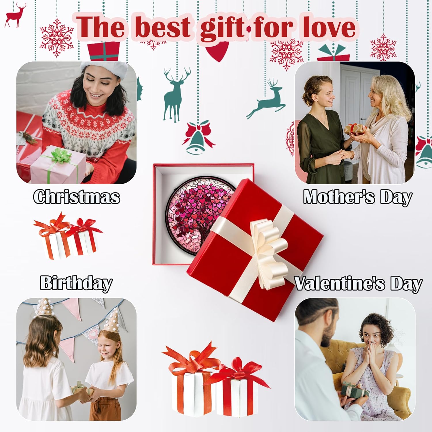 Stained Glass Window Hanging, Pink Love Tree of Life Sun Catchers Colorful Glass Panel Suncatcher Decor for Birthday for Women, Men, Wife, Lovers, and Mom 14.9x14.9 in