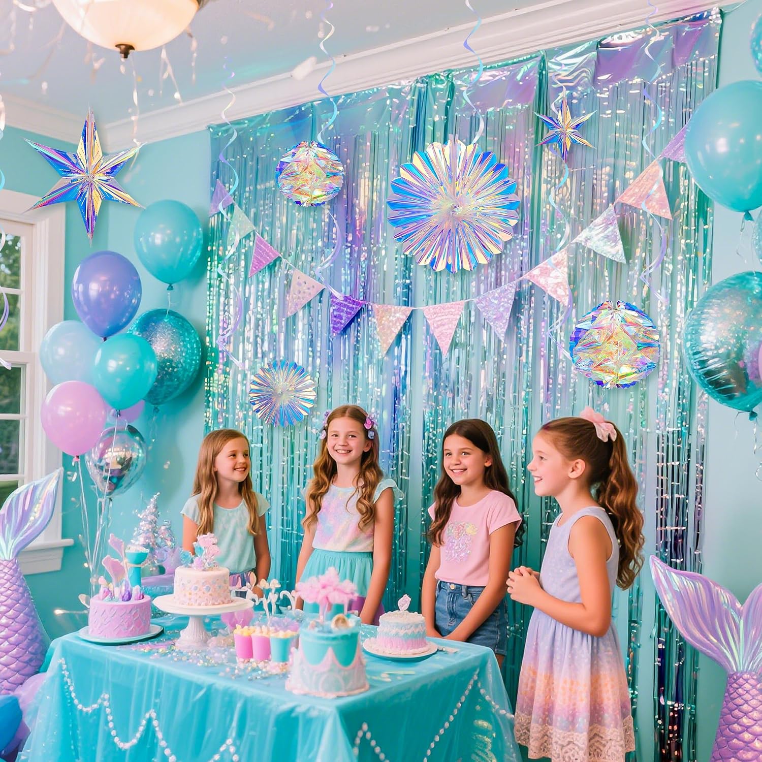 - Dazzling Iridescent Shine: Crafted with advanced technology, this iridescent themed party decoration set reflects shifting rainbow colors through light interference. The color changes with viewing angles, adding a dynamic, eye-catching sparkle to your space