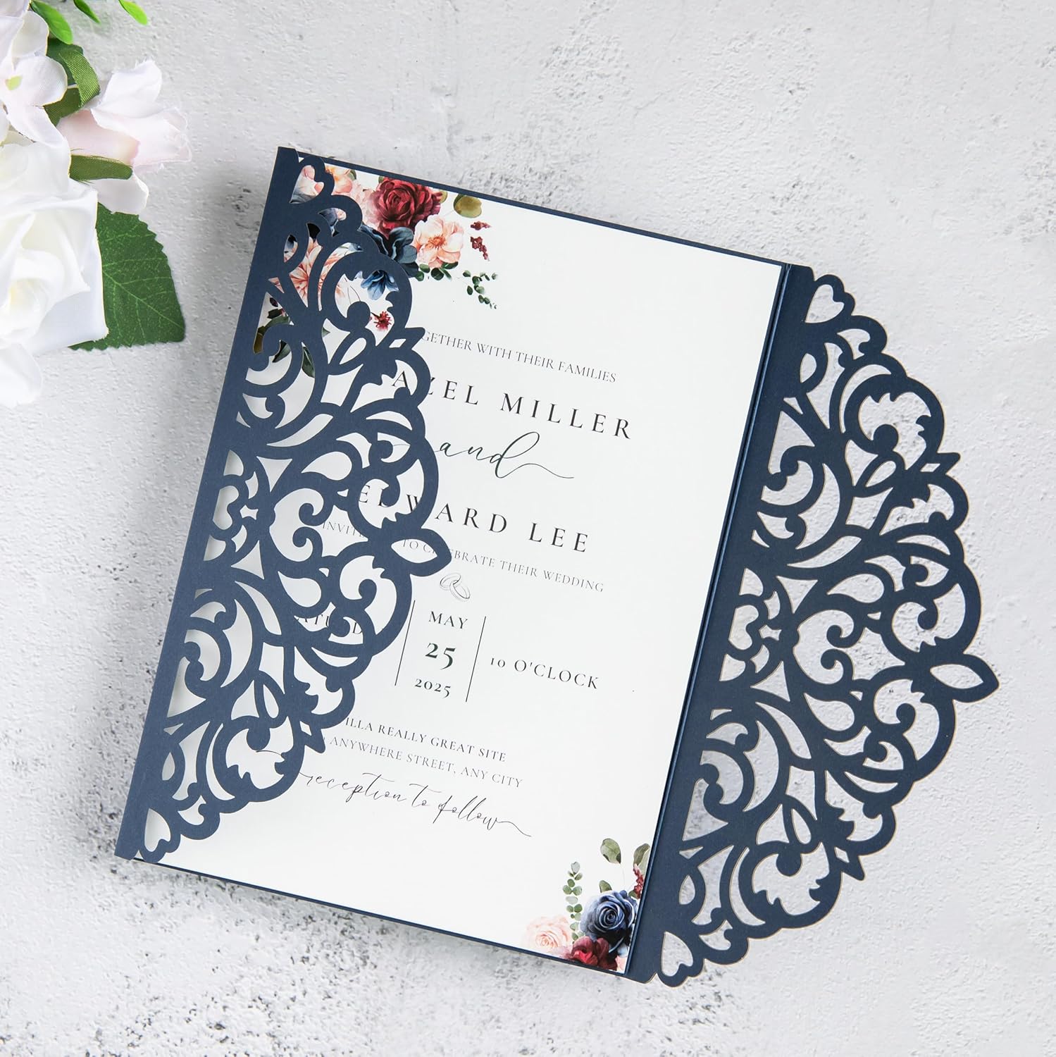 20Pcs Navy Blue Laser Cut Invitation Cards With Blank Inner Sheets for Wedding Cards Bridal Shower Engagement Quinceanera Invitation (No Envelopes)