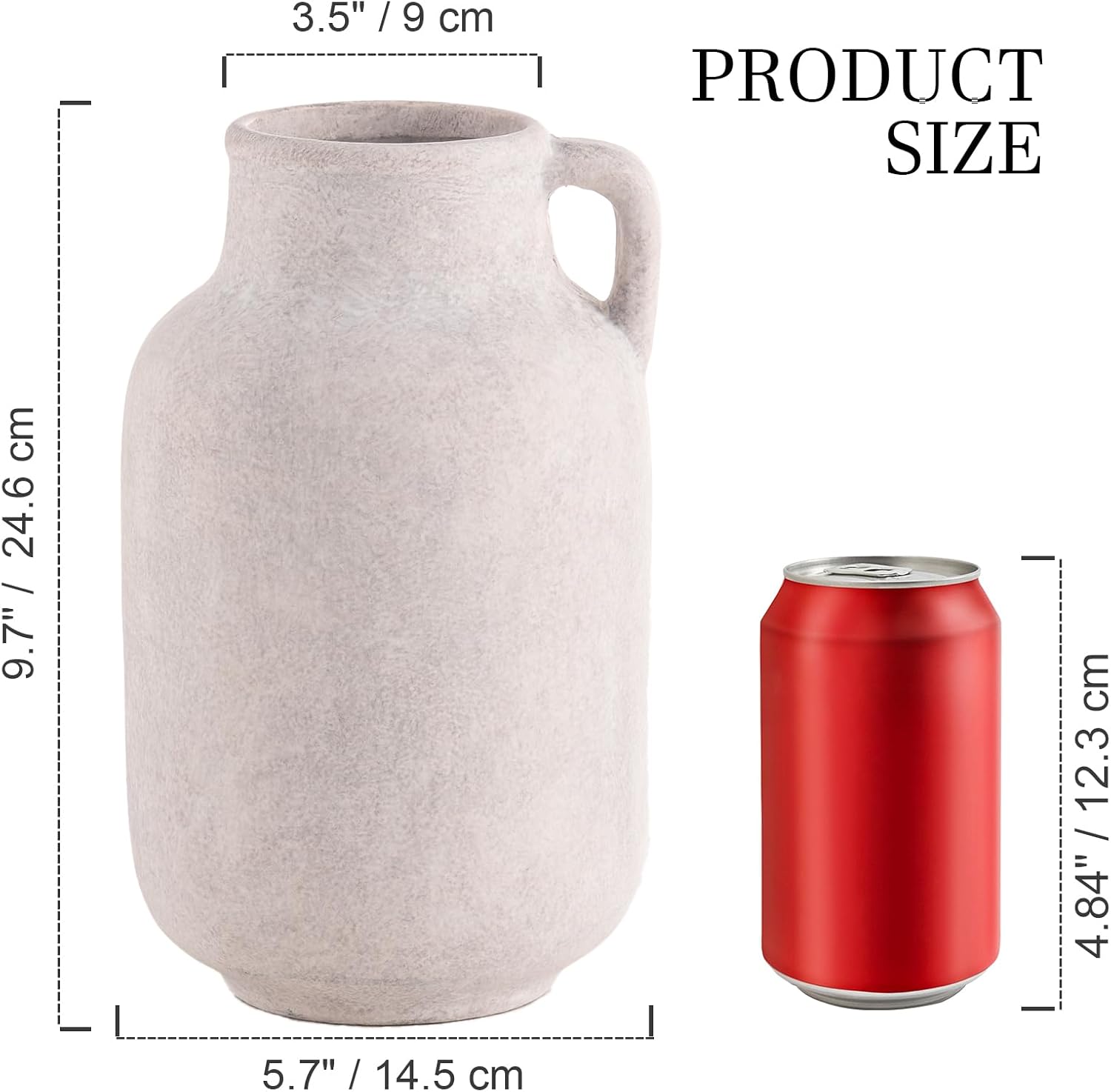 Ceramic Flower Vase Home Decor - 9.7 inch Large White Rustic Table Flowers Vases Living Room Bedroom Plant Decoration Farmhouse Vintage for Kitchen Shelf Office Coffee Dining Desk House Women