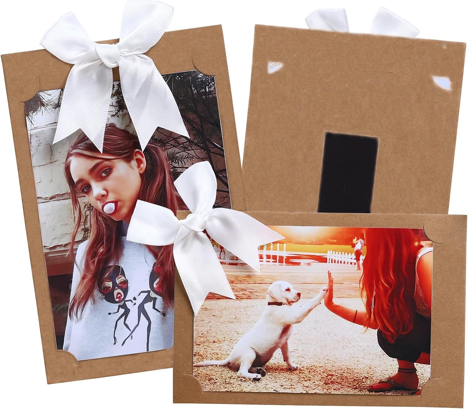 - Secure Magnetic Closure: Each one of our paper picture frames is made from thick cardboard material with a bowtie on top and a robust magnetic on back. Our photo frame have strong suction, they can firmly attach the photo to the refrigerator or any metal surface without falling off.