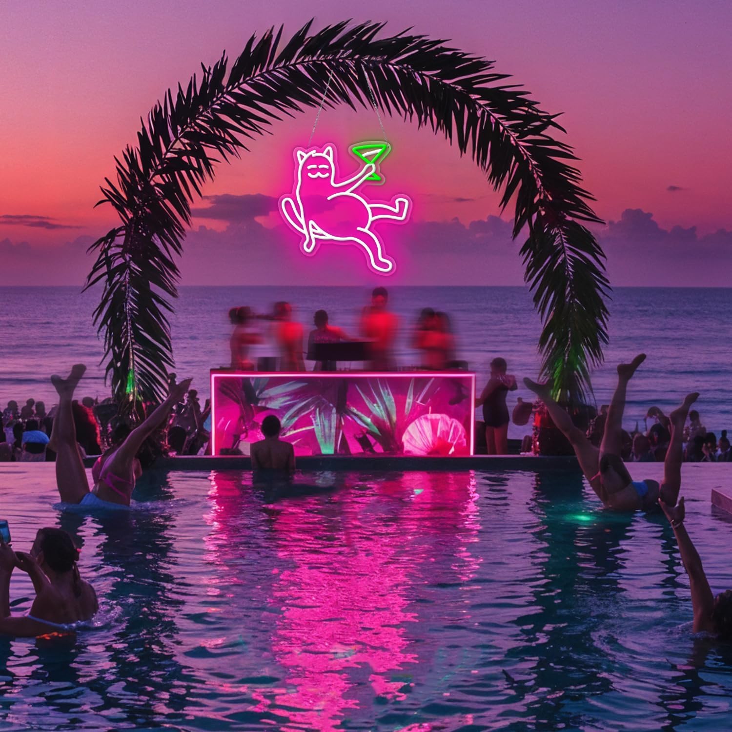 - A Chill Cat with Big Lounge Energy – Instantly Sets the Vibe Meet your new favorite roommate: a plump, laid-back cartoon cat holding a cocktail like it owns the night. This neon sign is more than just wall decor—it’s a whole vibe. Whether you're setting the tone for a cozy wine night or adding flair to your bar cart corner, this cat brings personality, charm, and a hint of sass to your space.