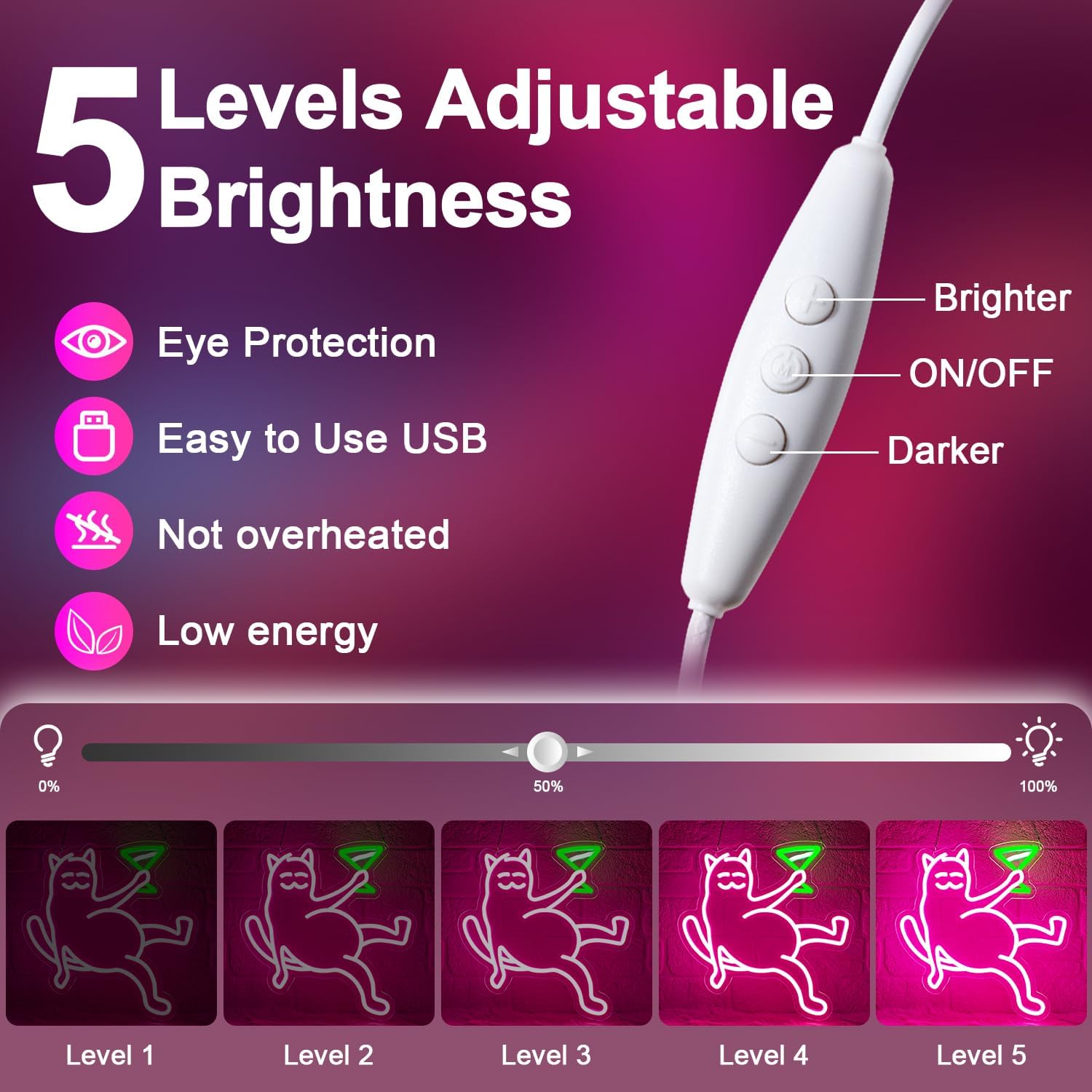 - Lightweight & Easy to Hang – Ready to Rock Any Wall Forget bulky glass neon signs—our acrylic backing is sturdy but lightweight. Pre-drilled holes and hanging chains make it super easy to mount on any wall, whether it’s in a college dorm, man cave, gaming room, bar area, or cat-themed nook. Just plug the USB in, flip the switch, and your new neon buddy is live.