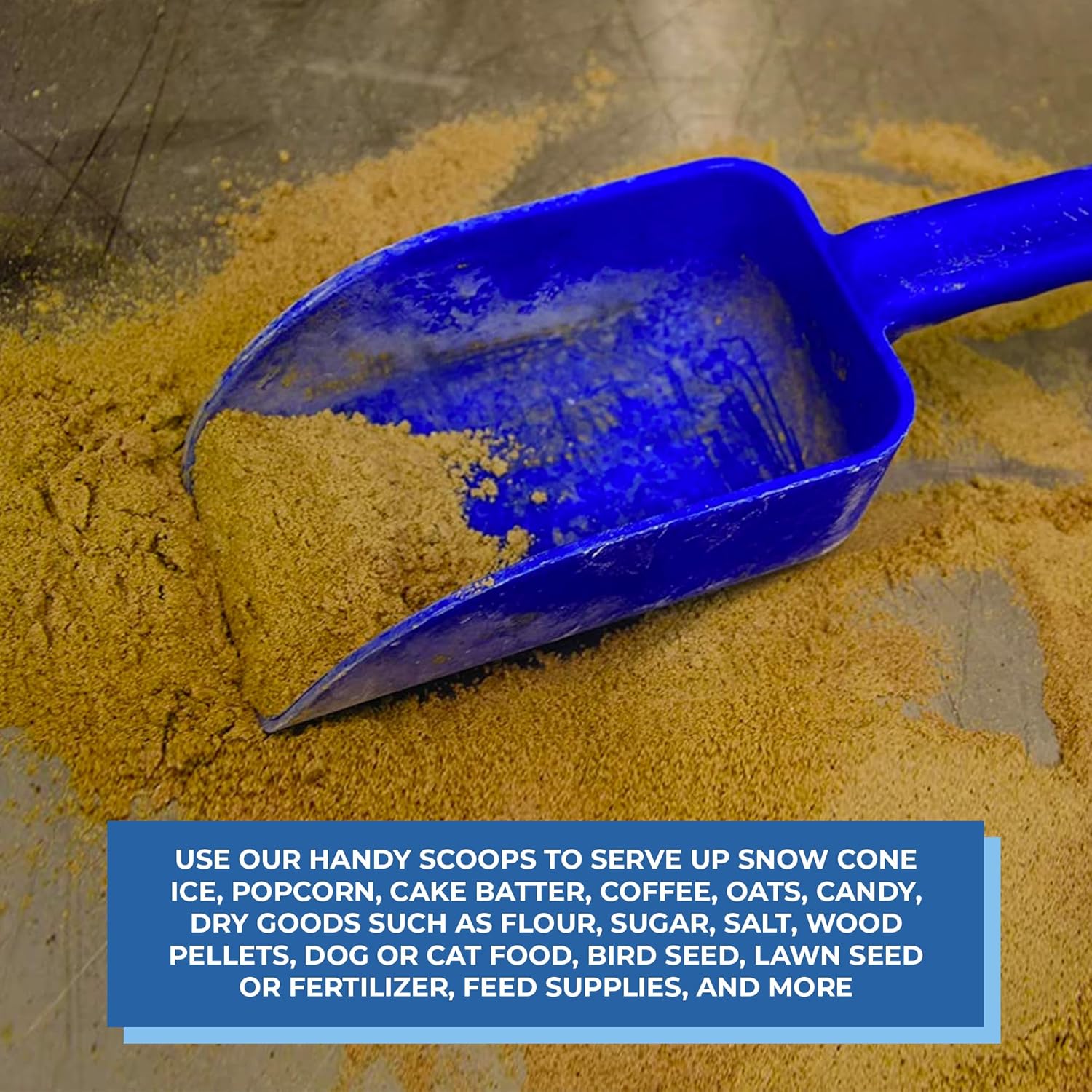 - MULTIPURPOSE AND EASY-TO-USE: Use our handy scoops to serve up snow cone ice, popcorn, cake batter, coffee, oats, candy, dry goods such as flour, sugar, salt, wood pellets, dog or cat food, bird seed, lawn seed or fertilizer, feed supplies, and more