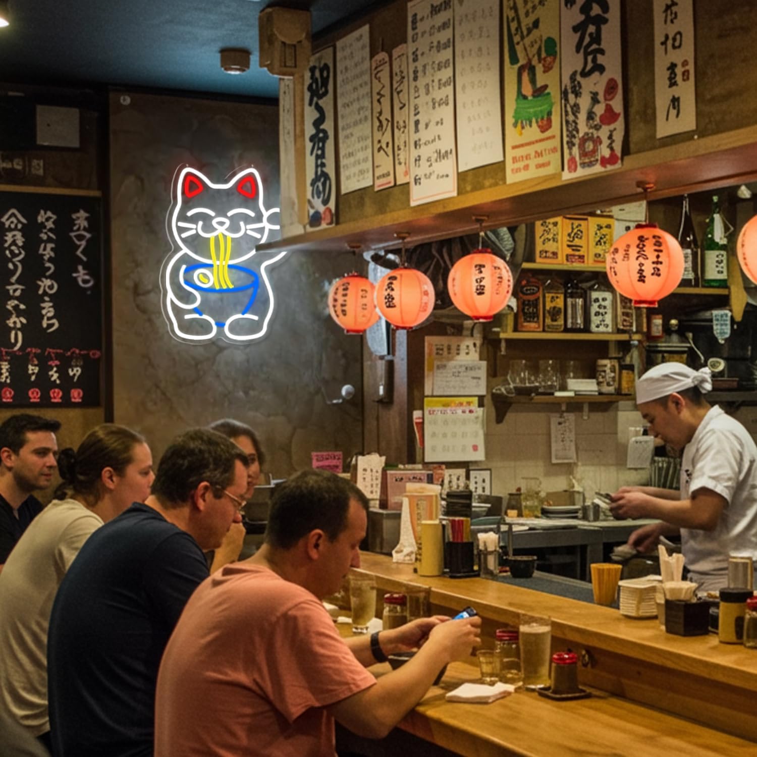 - Lucky Vibes & Fun Decor in One:Combining the Japanese beckoning cat symbol with a bowl of ramen,this sign brings both good fortune and quirky style.Great for fans of Asian cuisine,kawaii culture,or those looking for a unique gift.