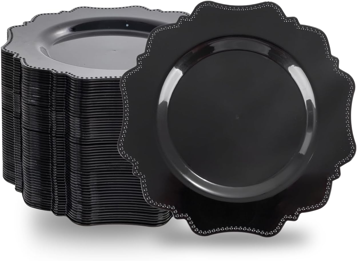 - 【Elegant Design】Ceramic-look black disposable plastic plates, designed to mimic the timeless elegance of fine porcelain without the fragility. Available in any theme.