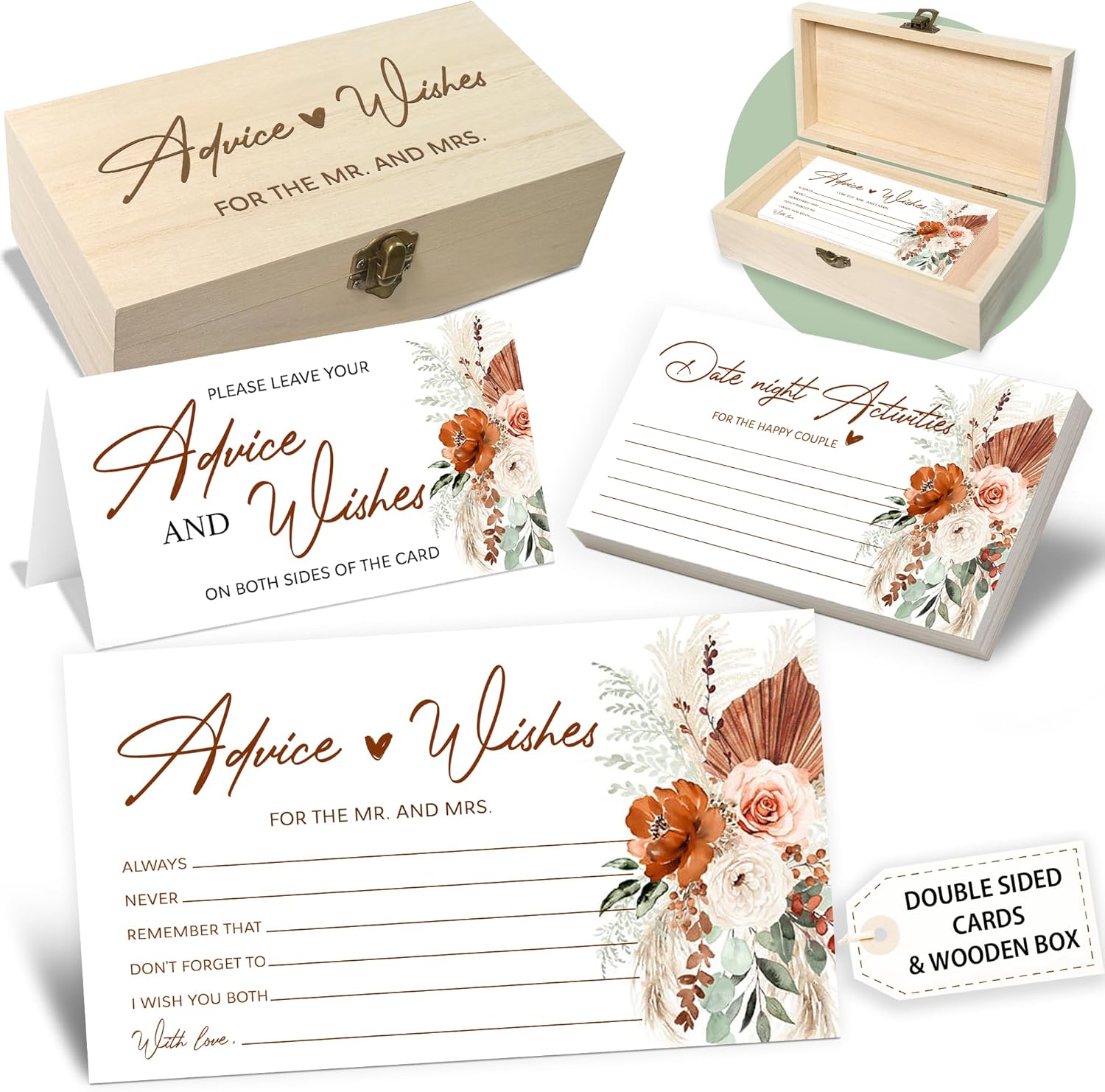 - Set Includes: Elevate your celebration with our deluxe set that includes 50 Pcs marriage wishes cards, an advice and wishes box for couples wedding shower decorations