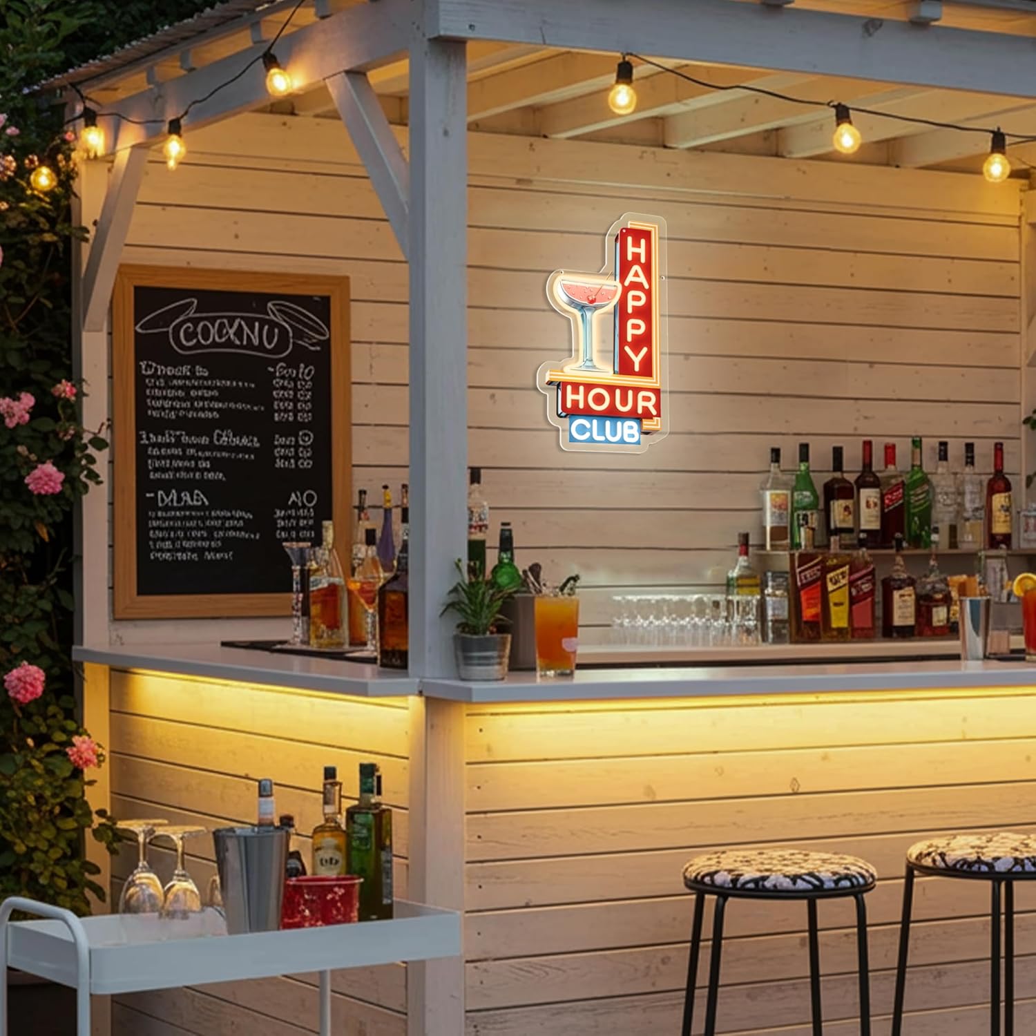 - 【Vintage Happy Hour Neon Light】 This retro-style "Happy Hour" neon sign features a classic neon font design, creating a warm and relaxed atmosphere. It is perfect for bars, clubs, pubs, or home lounges. When lit, the neon sign emits a soft yet bright glow, adding a nostalgic touch to your space.