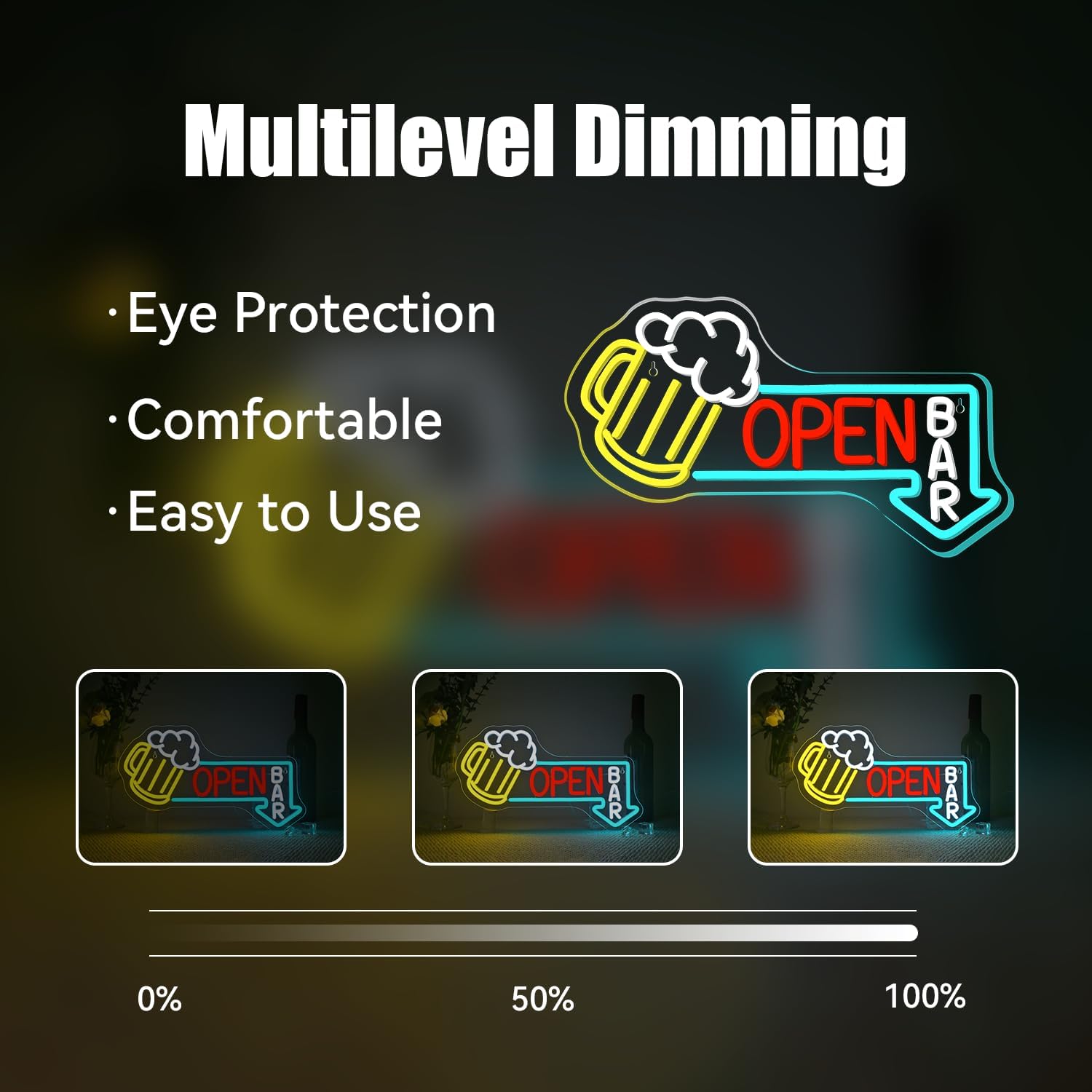 - Eye-catching sign:This Bar Open neon sign is a unique storefront decoration sign. It is composed of flexible LED light strips and transparent high-definition acrylic backplane. It has excellent long-term effects and high-brightness light effects, which will definitely catch the attention of pedestrians. Suitable for your bar restaurant business club party man cave wall decor