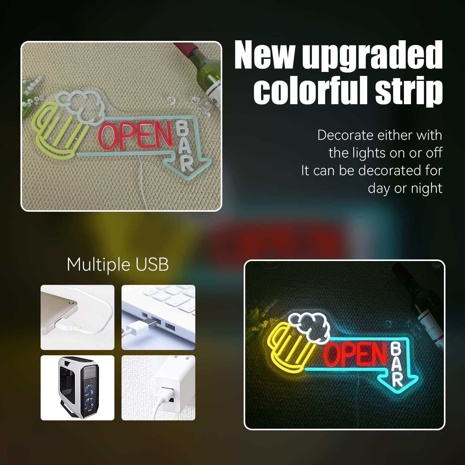 - Safety & Energy Efficient:5v low voltage design, higher brightness, lower energy consumption, very suitable for commercial use. The Bar Open neon light uses flexible silicone LED strips, which have a long life and there is no risk of normal neon glass breaking or leakage of harmful substances