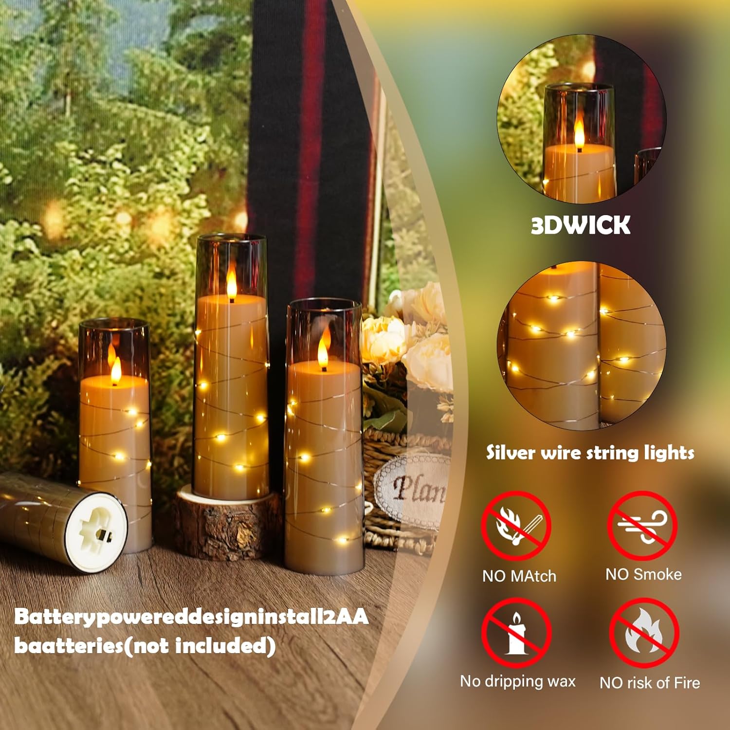 - 【Embedded Light Strings】: "Crafted to elevate contemporary living spaces, these flameless candles feature an innovative embedded starry-light string design, with the lights safely encased within the LED candles to create a warm and inviting ambiance."