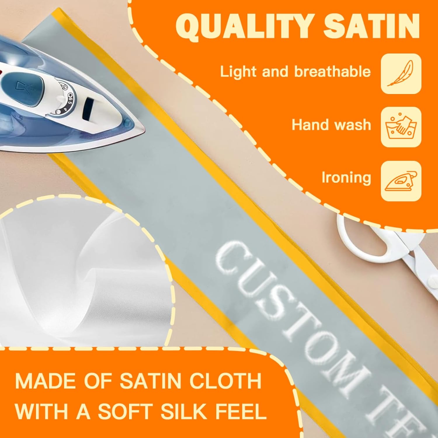 - Custom Sashes:this is a customizable sash.You can upload your favorite photos,pictures,text,logo.then you can get a unique and personalized sash.