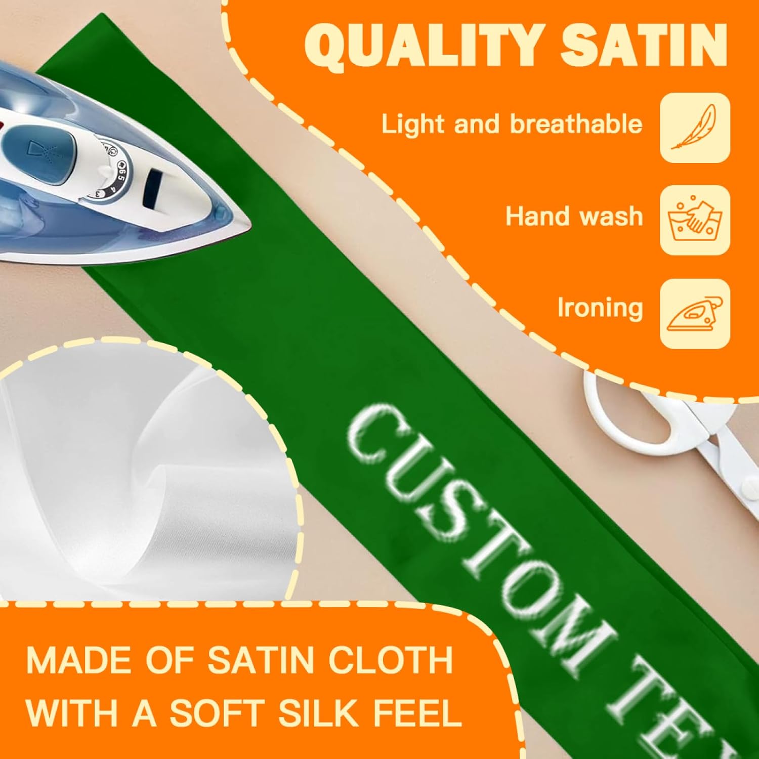 - Custom Sashes:this is a customizable sash.You can upload your favorite photos,pictures,text,logo.then you can get a unique and personalized sash.