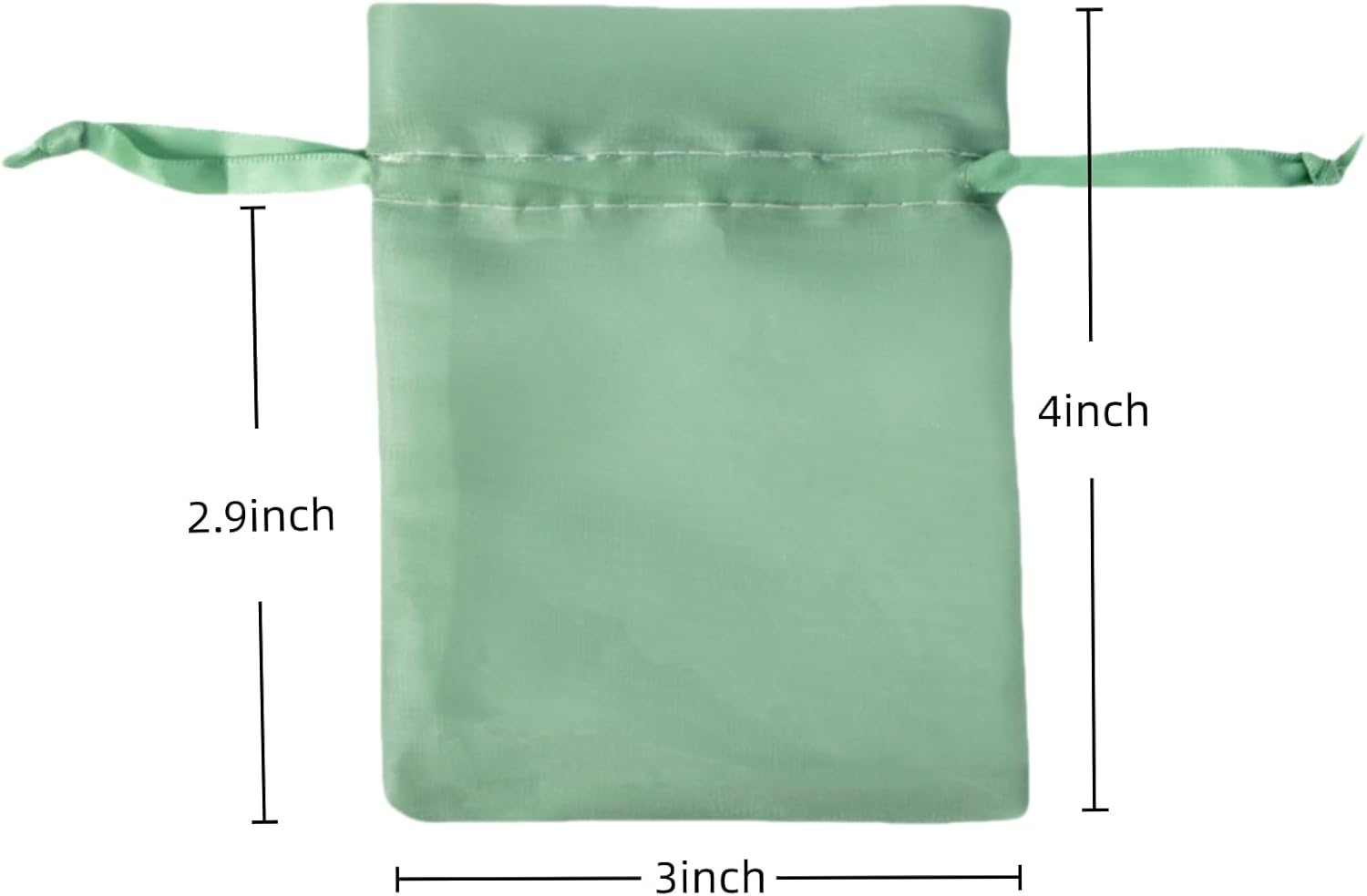 QIANF 20 Pcs Sage Green Small Organza Bags 3X4 inch for Wedding Favors with Drawstring, Mini Mesh Gift Bags Jewelry Pouch for Candy Bridal Shower Party Favor Baby Shower Christmas