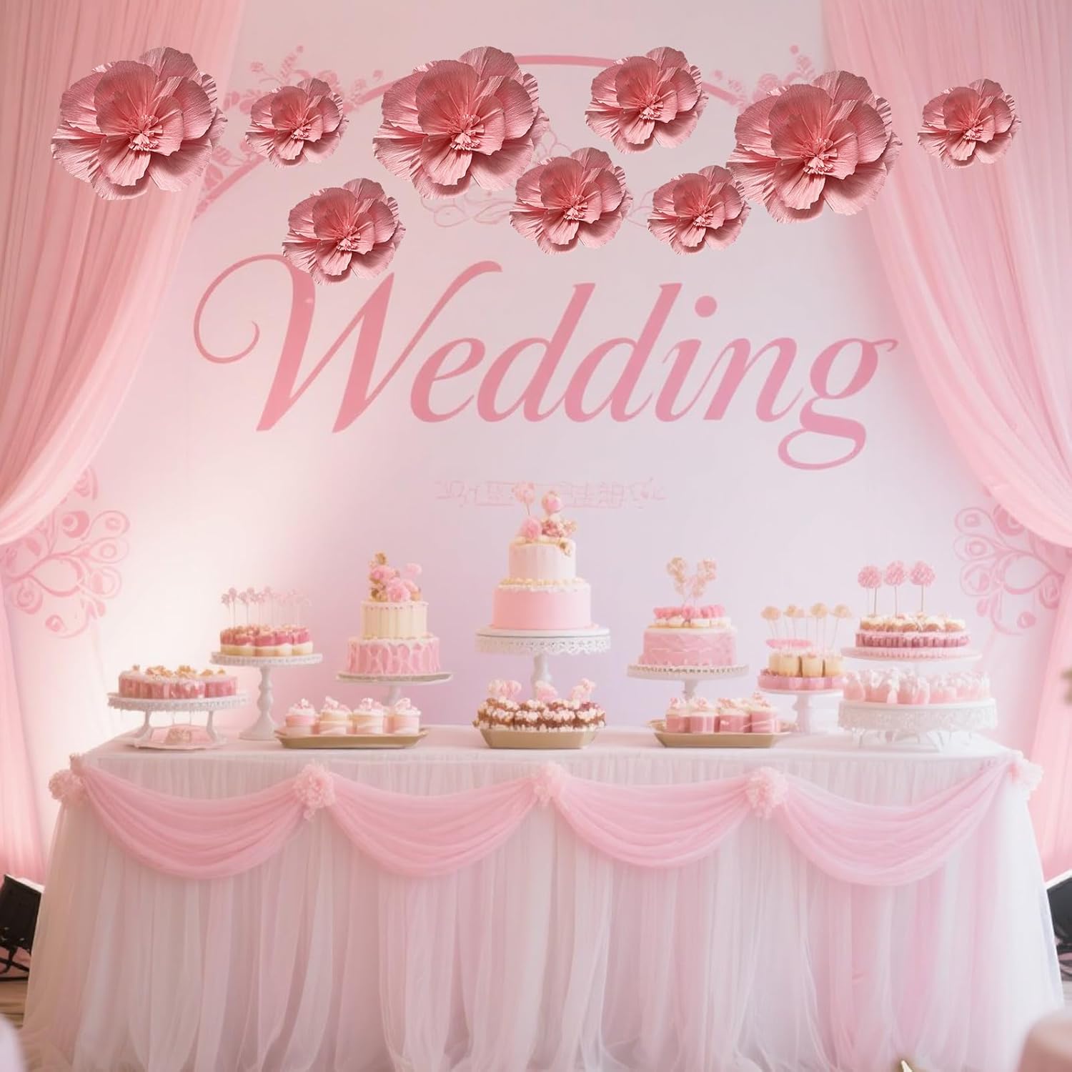 - Crepe Paper Flowers: Total 9pcs pink paper flowers in 3 sizes 12”, 10”, 8”.