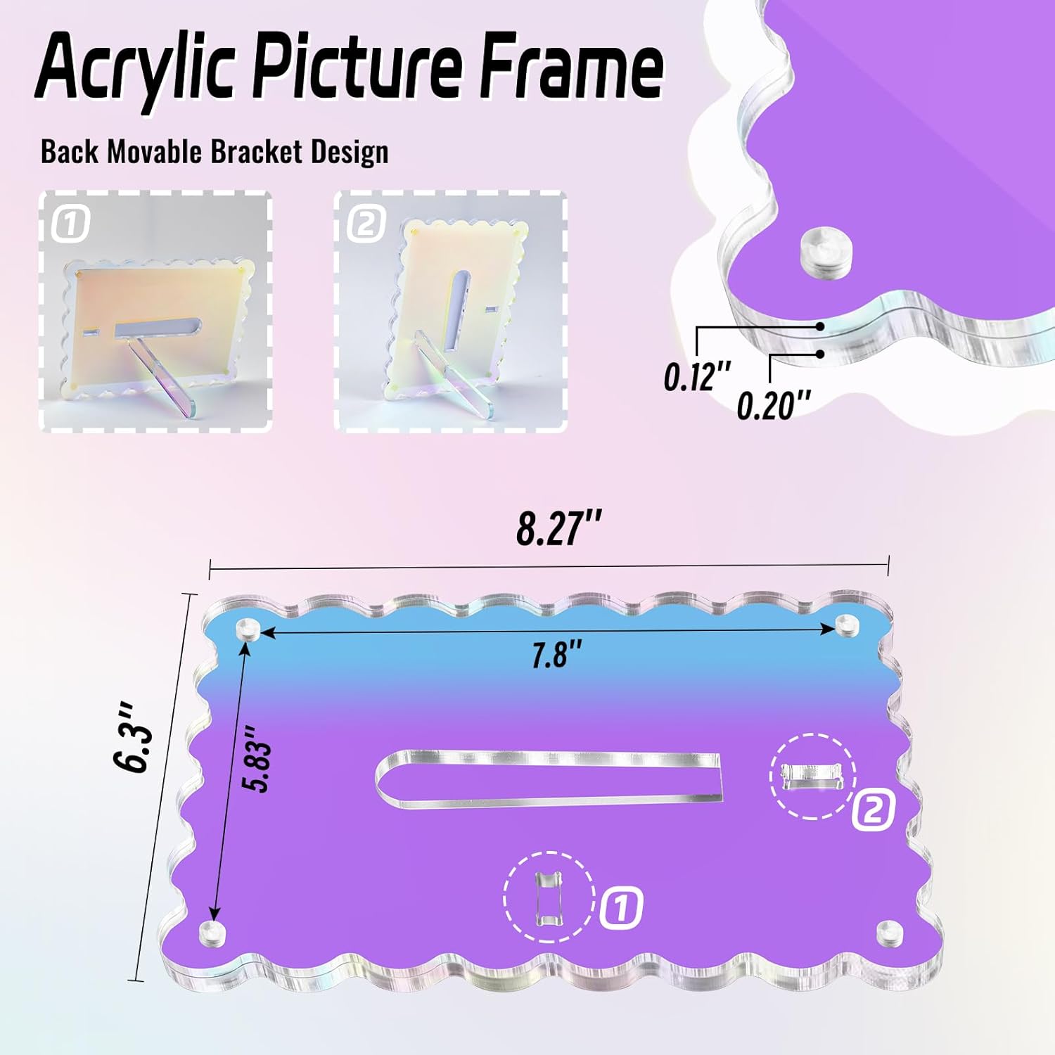 - Special Appearance: The front clear acrylic panel and back Iridescent scalloped panels are combined by strong magnetic magnets, which is both beautiful and very convenient to change photos