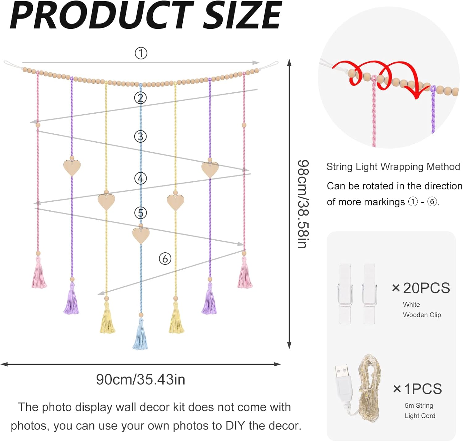 - 【Boho Vibes Essential】Transform bland walls into boho sanctuaries with this illuminated photo display. Teen girls will adore the chic clips and glowing accent making it must-have macrame decor for dorms/bedrooms
