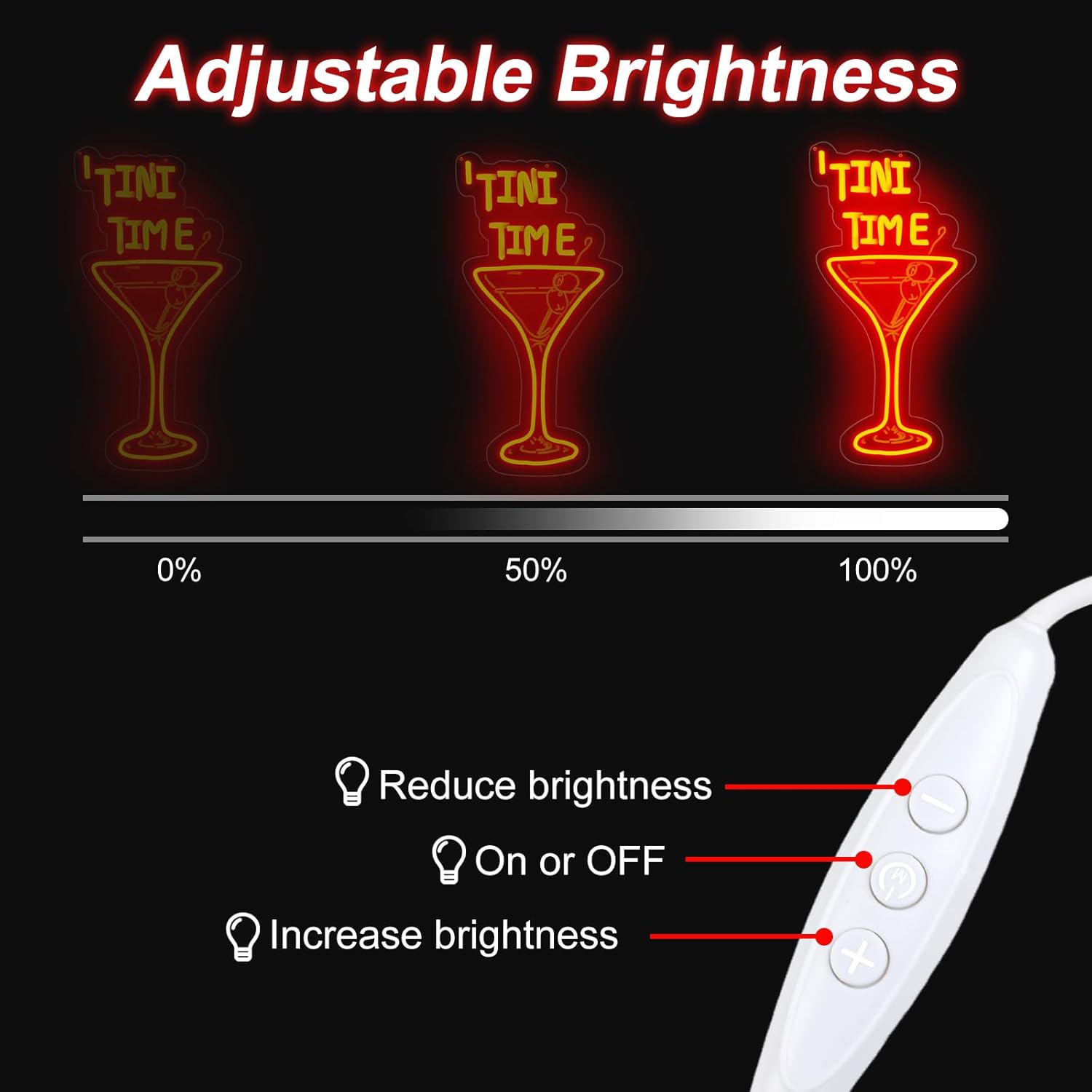 - Easy to Use: The LED neon light features USB connector and dimmable settings, allowing you to freely adjust the brightness to suit the atmosphere you desire. You can power the neon LED sign with a mobile power bank, USB ports, computers and so on