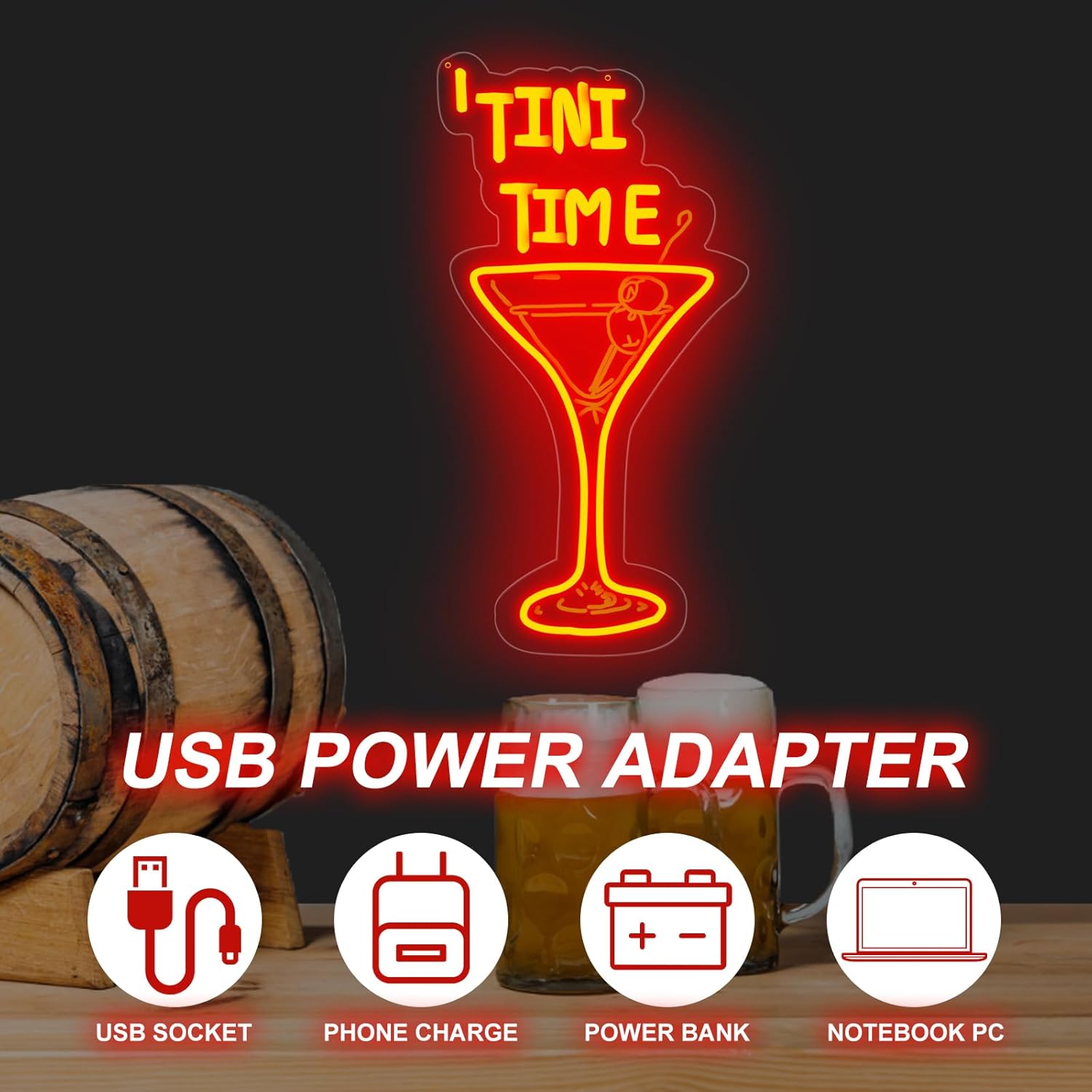 Tini Time LED Neon Sign, Martini Neon Sign for Bars, Elegant Cocktail Glass Neon, Martini Cocktail Bar Wall Decor, Bar Wall Art, Pub neon, 16.5"x8.7", Red