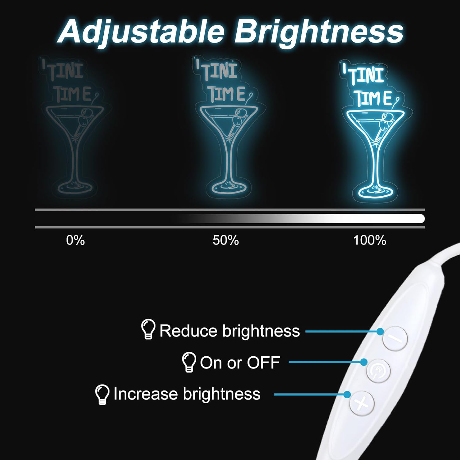- Easy to Use: The LED neon light features USB connector and dimmable settings, allowing you to freely adjust the brightness to suit the atmosphere you desire. You can power the neon LED sign with a mobile power bank, USB ports, computers and so on