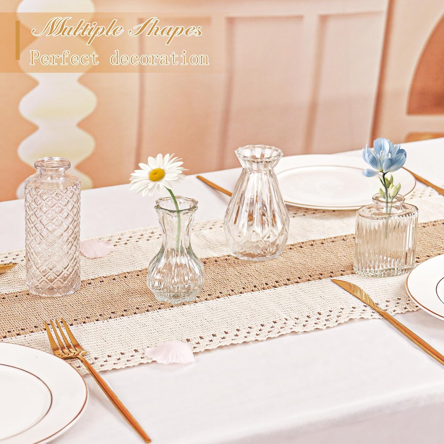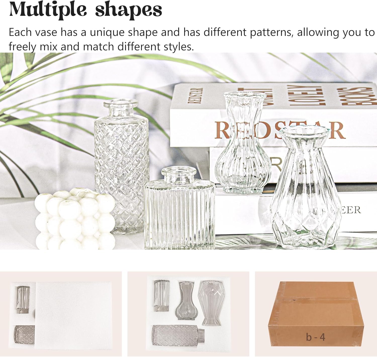 Set of 4 Glass Bud Vase Set, Small Vintage Clear Flower Vase Centerpieces for Table Bulk Cute Rustic Style Mini Vase for Home Decor Wedding Baby Shower Birthday Party