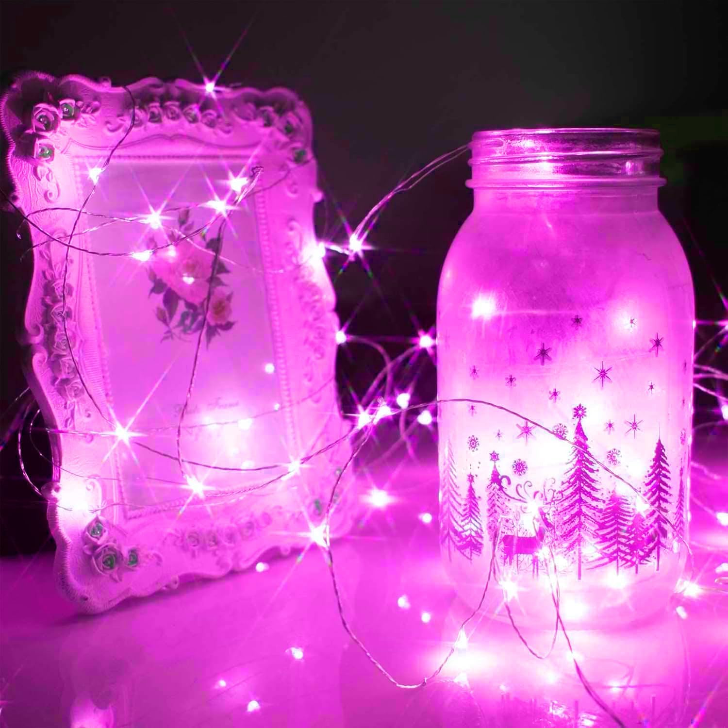 24 Pack LED Fairy Lights Battery Operated 7Ft 20Led Mini String Lights Waterproof Christmas for Mason Jars Bedroom DIY Party Wedding Christmas Decor Pink