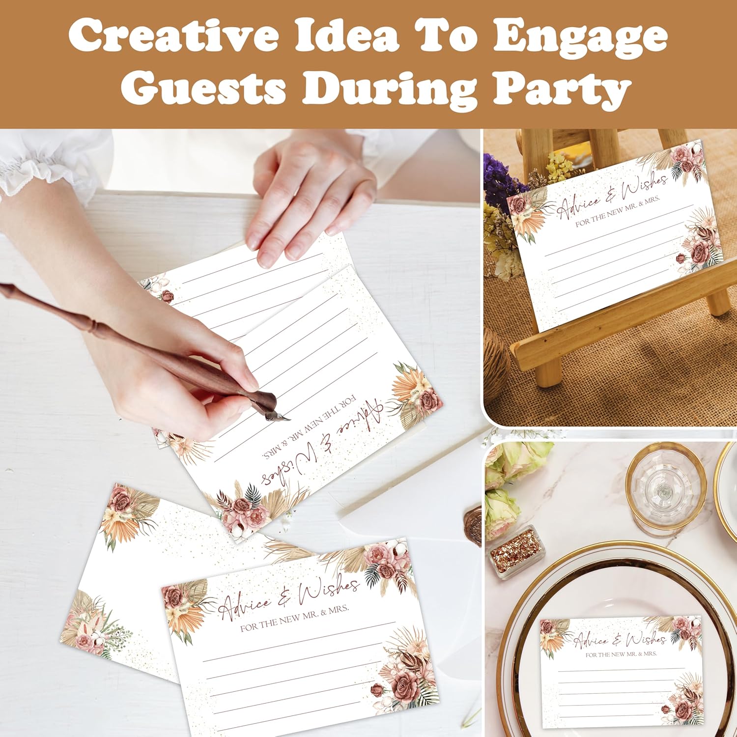 Advice And Wishes Cards (25pcs), Boho Theme Advice Cards For Mr And Mrs, Bride And Groom, Bridal Shower, Wedding Shower, Engagement, Wedding, Bachelorette Party Games Decor -A01